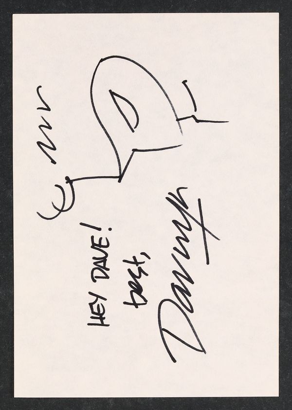 Signed by the artist. Ink on sketchbook paper. 8 1/4" x 5 3/4".