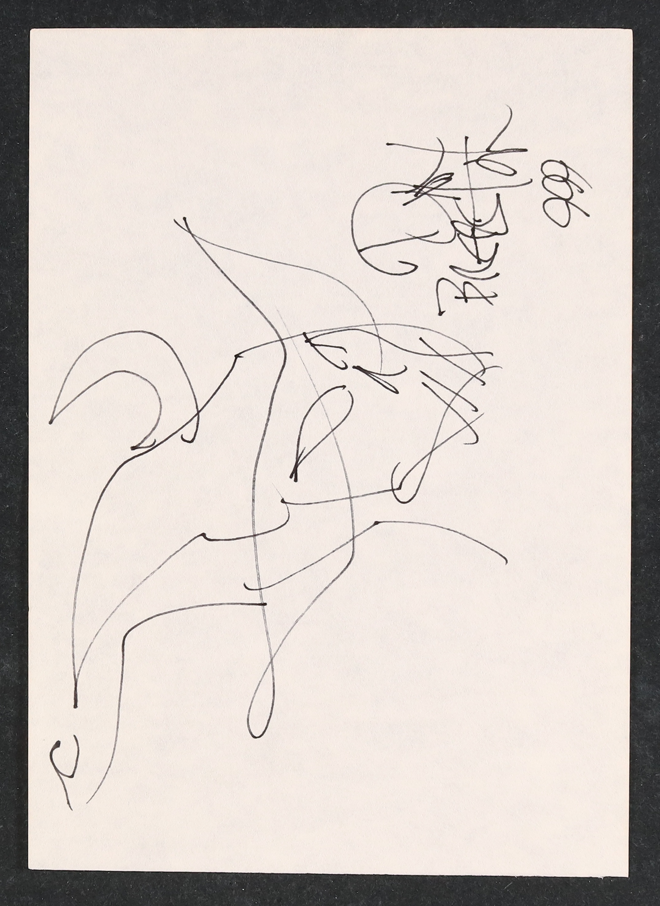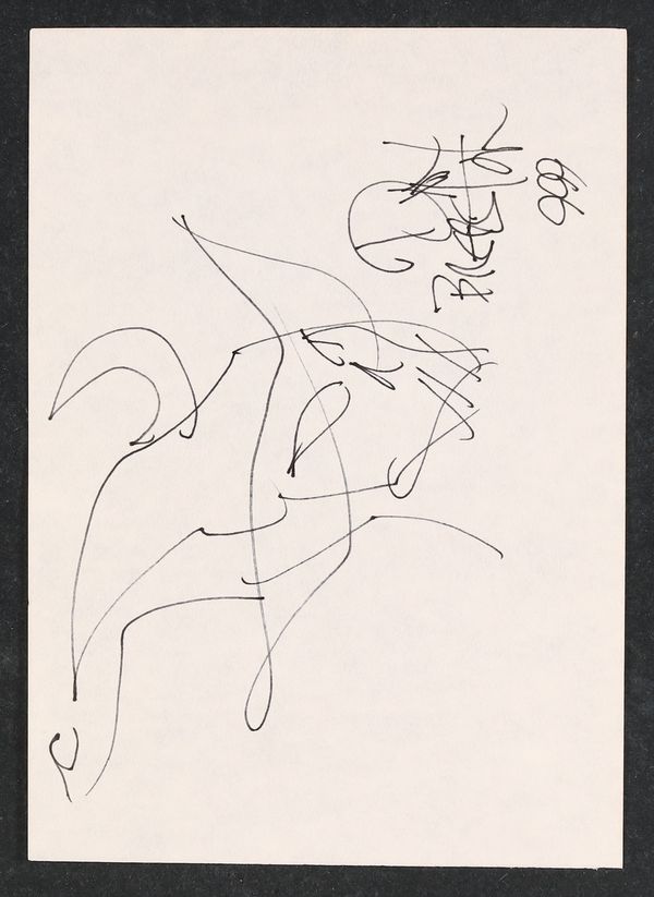Signed by the artist. Ink on sketchbook paper. 8 1/4" x 5 3/4".