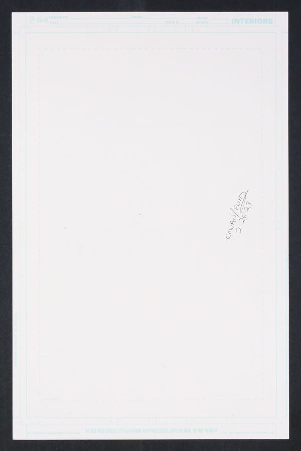 The trial of Curtis Metcalf! Falsely accused of murder after bullets fired by security guards ricochet off Hardware's armor and kill the head of Edwin Alva, Curtis is in a tough spot and his time-travelling, super-suited self has returned to his own time. Good thing Curtis has a great lawyer- and hard evidence! Ink over printed pencils on comic art board. 11" X 17".