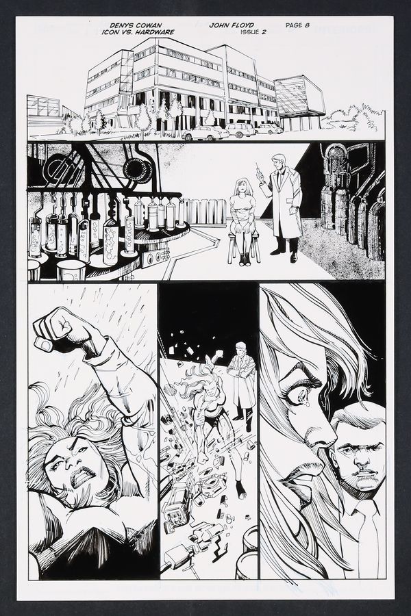 Original Art from Icon vs. Hardware #2 (2023) Page 8 Printed Pencils by Denys Cowan, Inks by John Floyd
