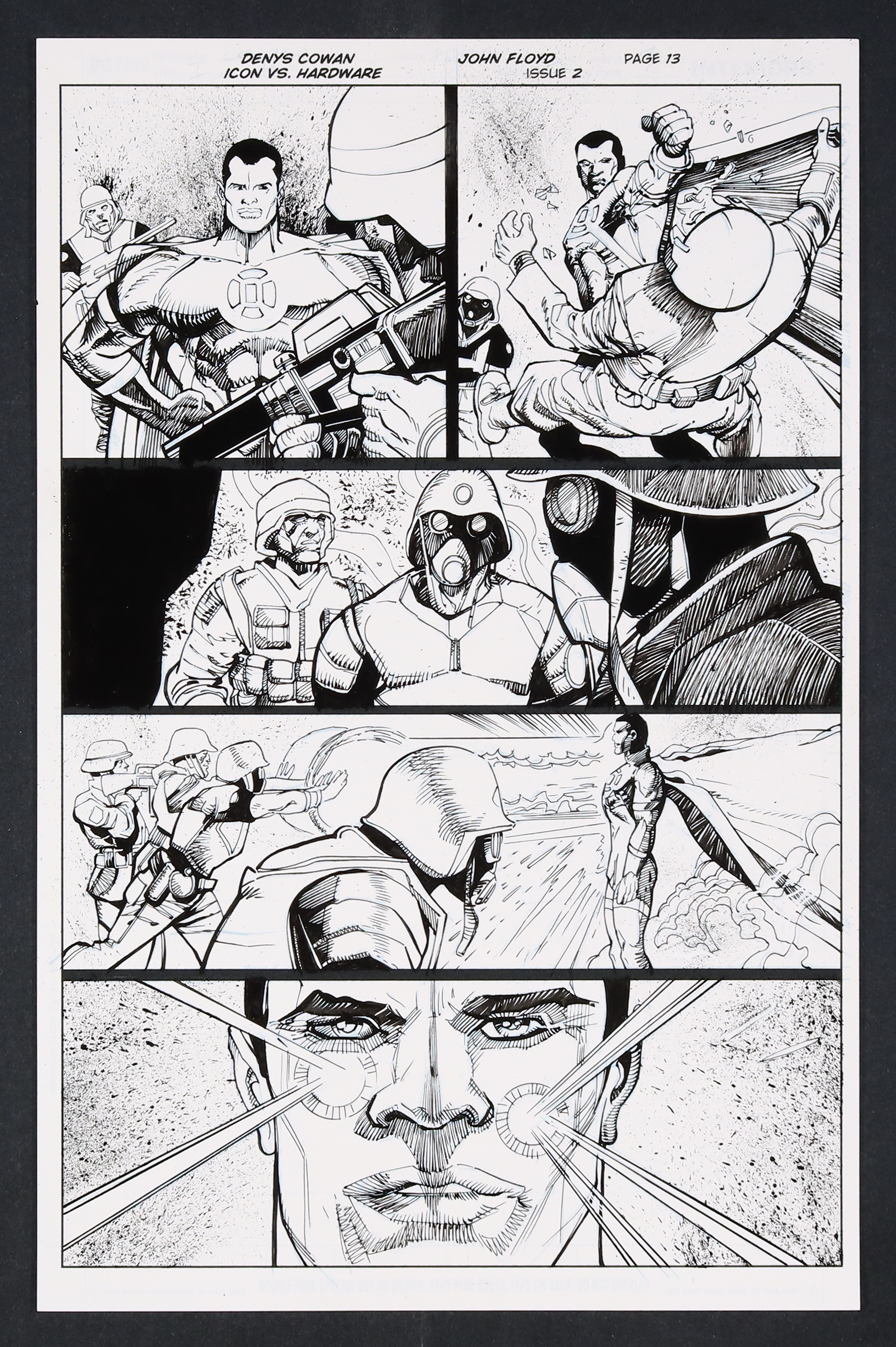 Original Art from Icon vs. Hardware #2 (2023) Page 13 Printed Pencils by Denys Cowan, Inks by John Floyd