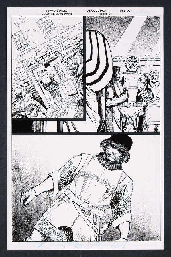 Original Art from Icon vs. Hardware #2 (2023) Page 25 Printed Pencils by Denys Cowan, Inks by John Floyd