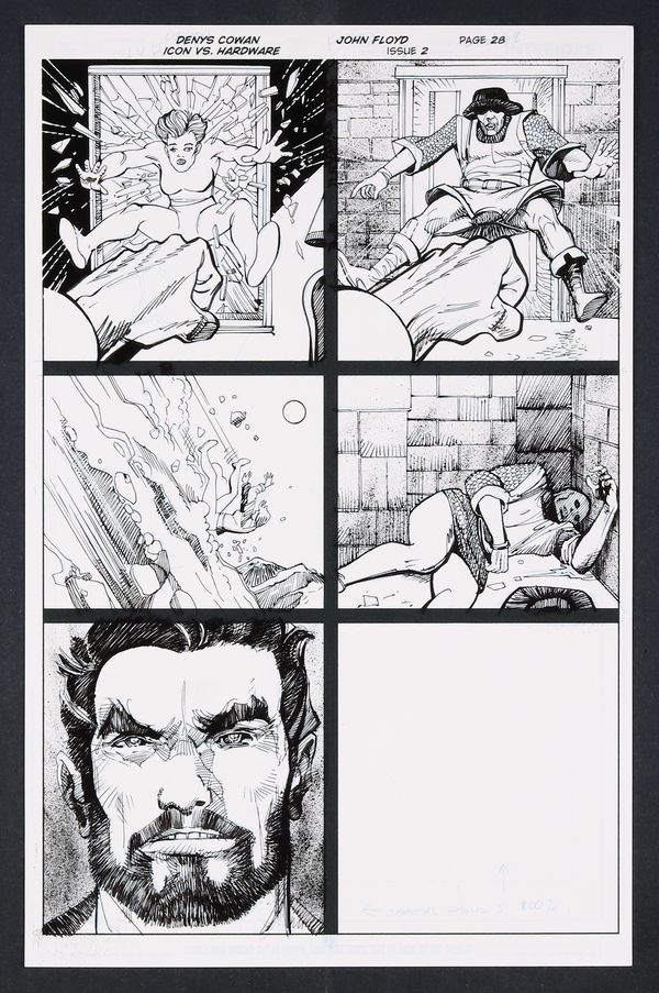 Original Art from Icon vs. Hardware #2 (2023) Page 28 Printed Pencils by Denys Cowan, Inks by John Floyd