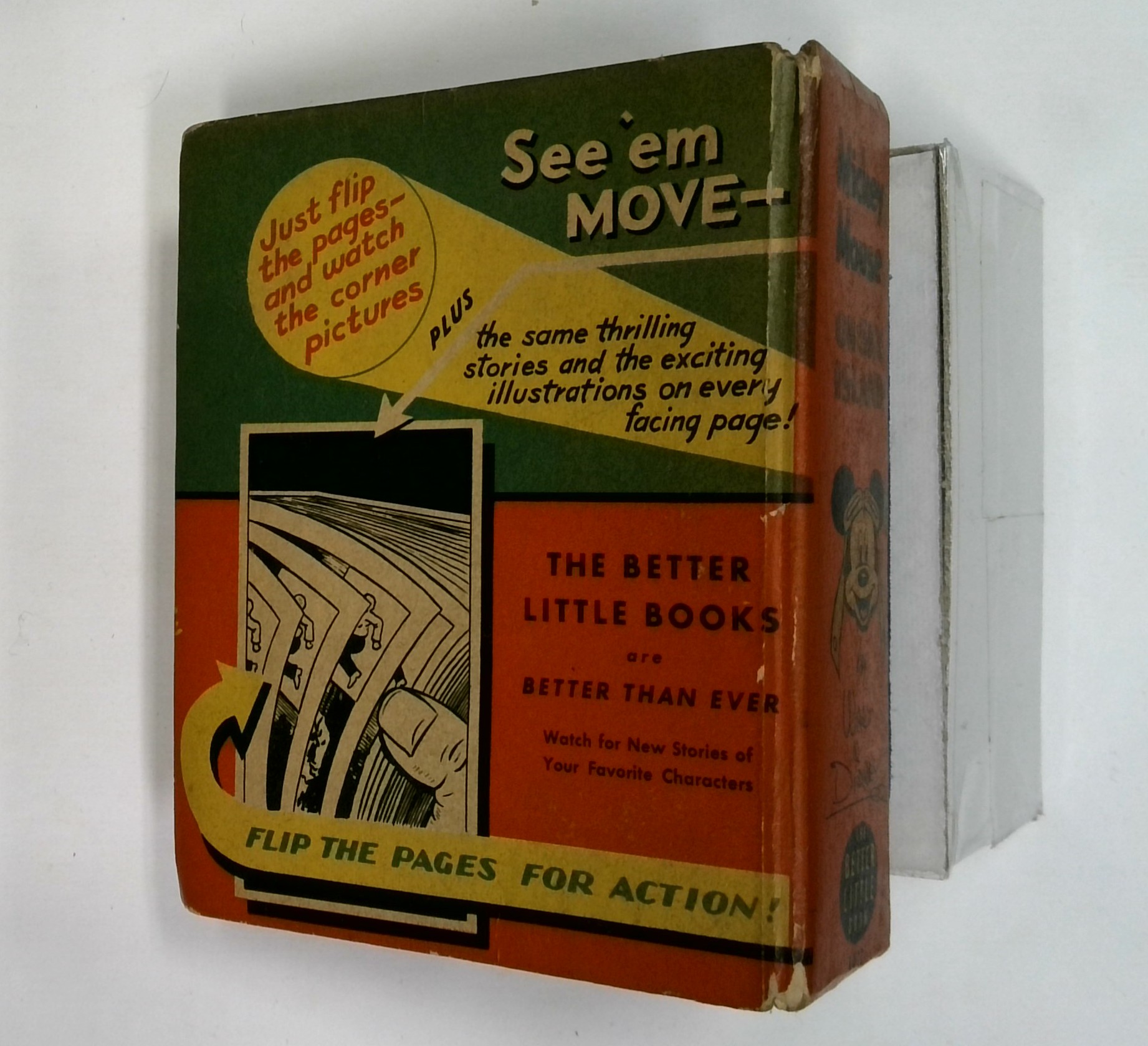 Mickey Mouse on Sky Island (1941 Whitman BLB) #1417, flip pictures, Gottfredson, considered by Gottfredson to be his best Mickey story. 3.5" x 4.5", 432 pages, B&W.