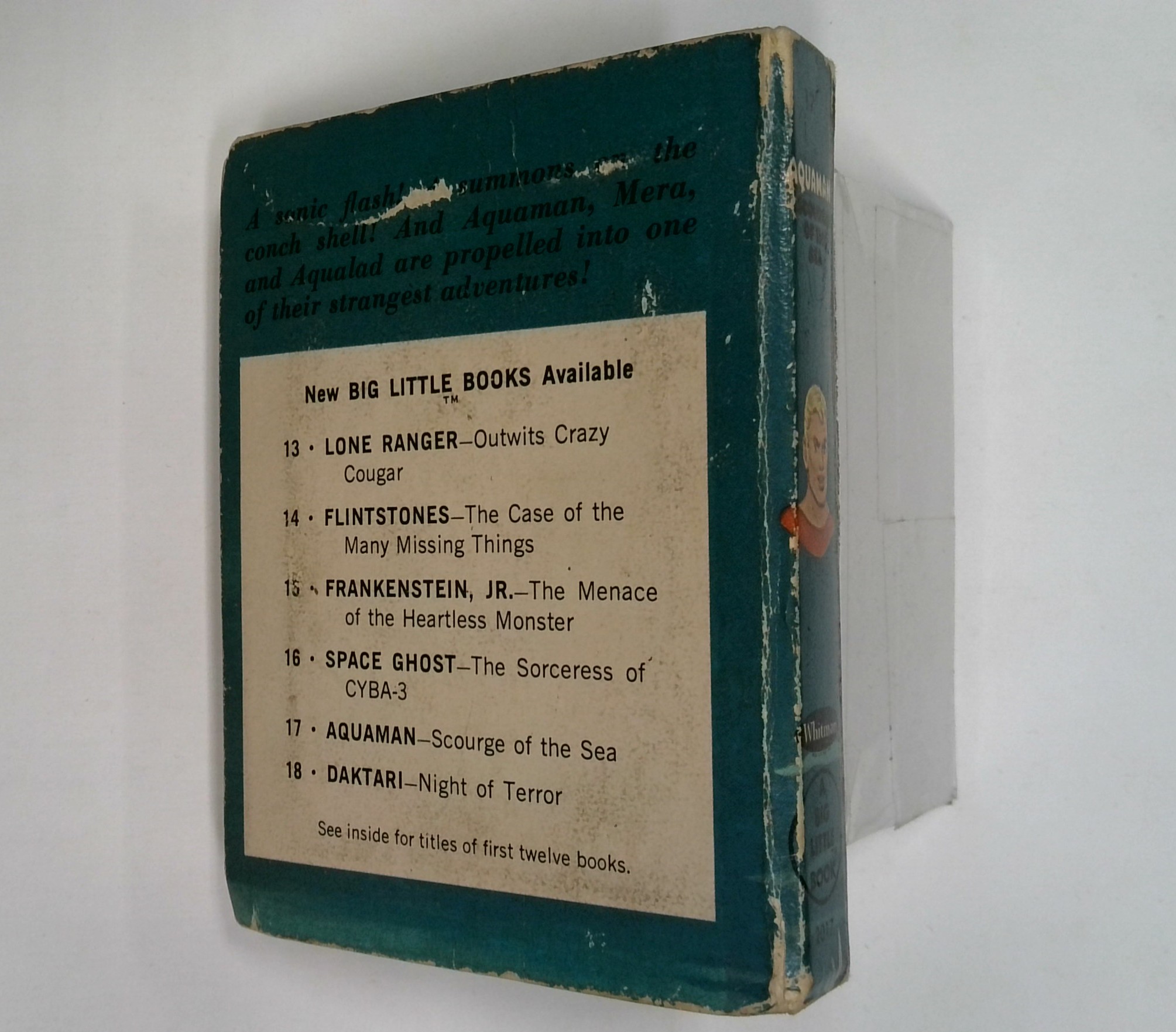 Tags: Big Little Books HC$7.60Aquaman Scourge Of The Sea (Big Little Book 1968) is a Big Little Book published by Western Publishing, Co. 250 pages, color pictures with text, 3.5-in. x 4.75-in., newsprint with hardcover, with $0.39 cover price. Cover price $0.39.