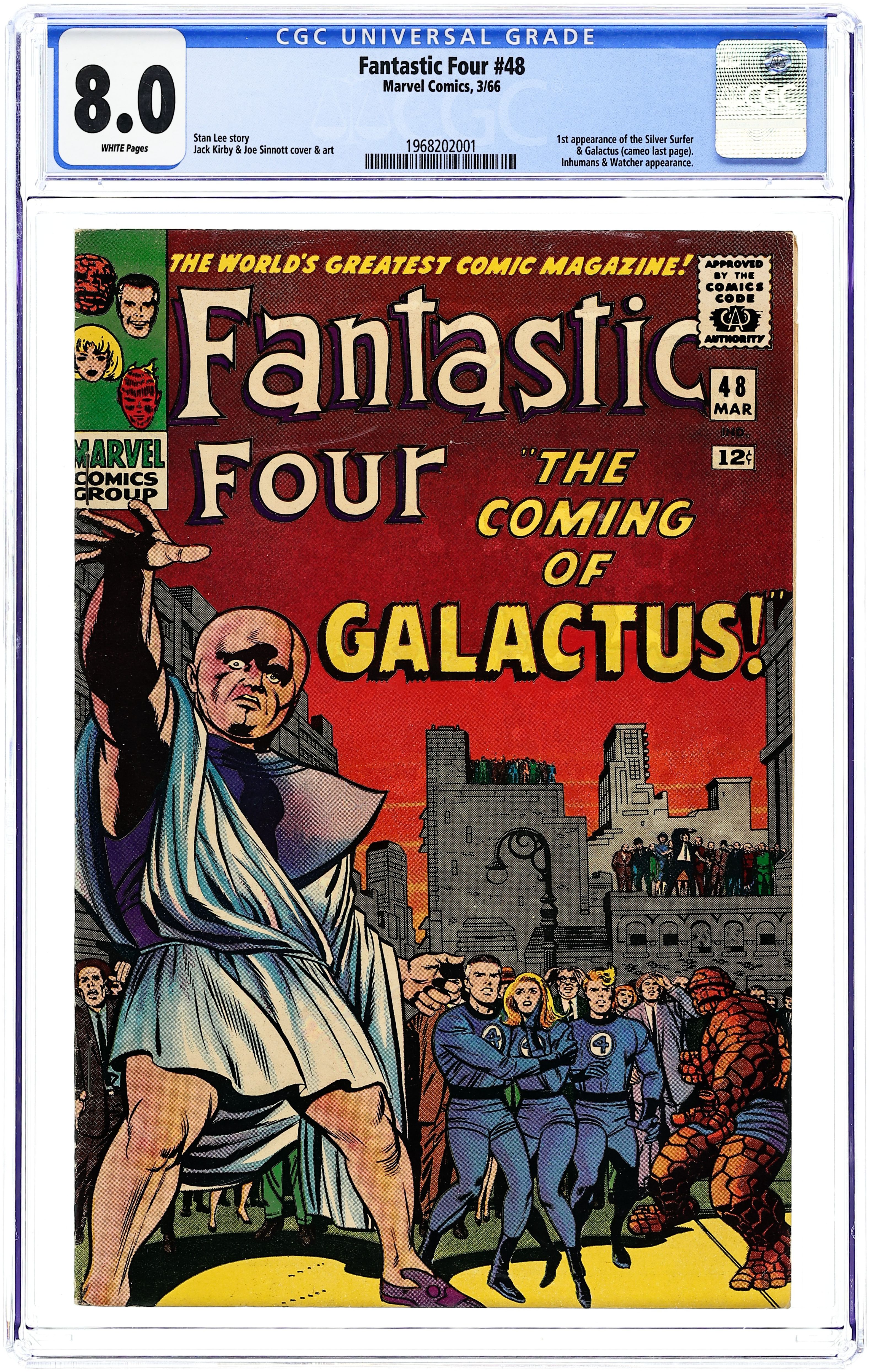 Cover pencils by Jack Kirby, inks by Joe Sinnott. First appearance of Galactus and the Silver Surfer in one of the most famous stories of the Silver Age, The Coming of Galactus!, script by Stan Lee, pencils by Jack Kirby, inks by Joe Sinnott; Black Bolt and the Fantastic Four put an end to Maximus's plan to destroy all the humans; Once the Fantastic Four return to New York the Watcher tells them of the coming danger of Galactus. Letter to the editor from comics writer Don McGregor. 36 pages, full color. Cover price $0.12.