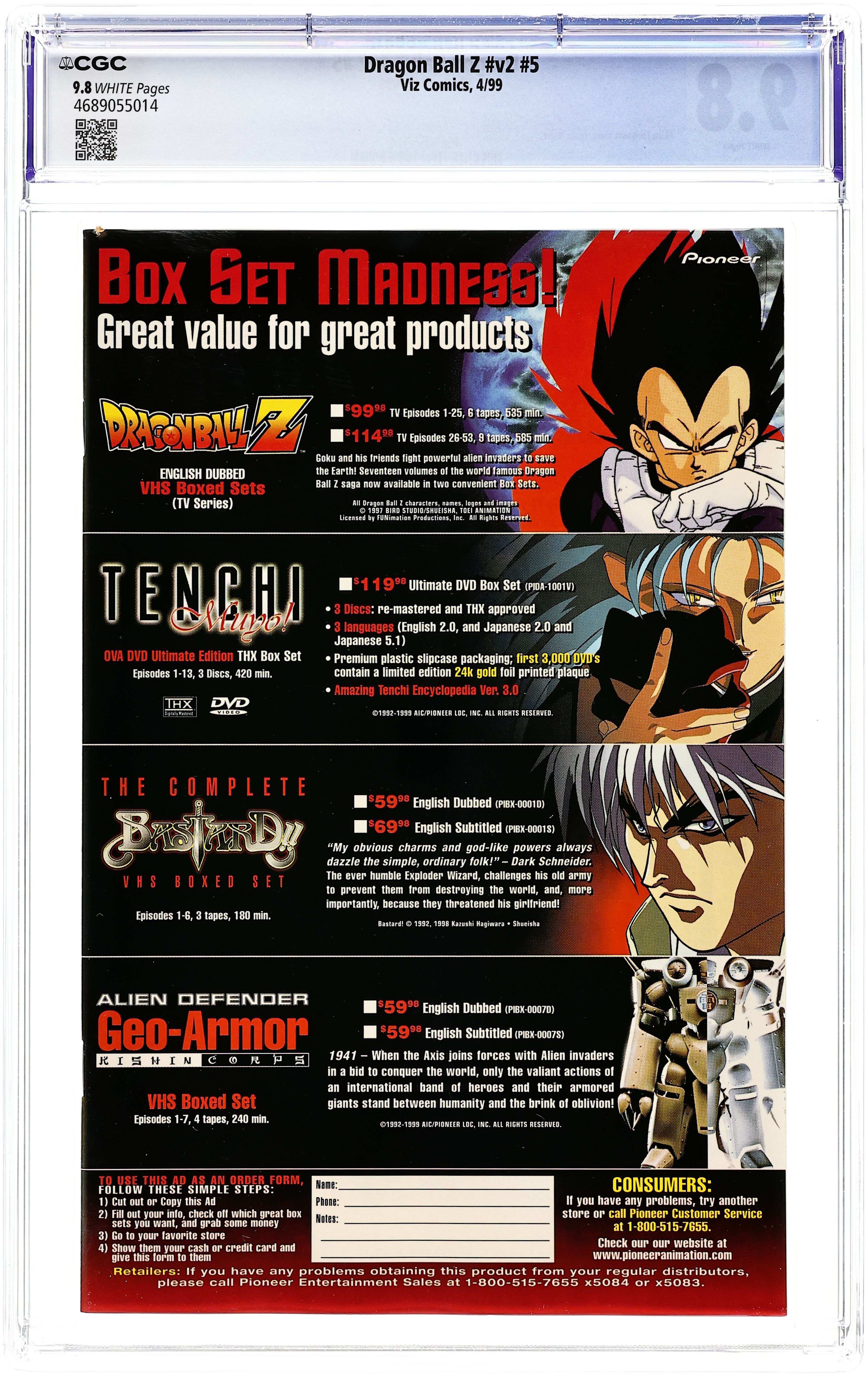 by Akira Toriyama Now back on the Cartoon Network with a third season of all-new anime episodes, Dragon Ball Z is hotter than ever, and Viz brings you the original manga! Giant ape Vegeta has Goku right where he wants him ? in the grip of his bone-crushing paws! Can the surviving heroes save him by cutting off Vegeta's tail, the source of his power? (CAUT: 3) NOTE: Available in North America, U.K., Australia, New Zealand, and Puerto Rico. b&w, 32pg (12 of 14)" Cover price $2.95.