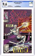 Newsstand Edition. "Aftermatch!" Guest-stars galore. Story by Steve Englehart. Art by Ron Lim, Joe Rubinstein, and Tom Christopher. In this transition issue the Silver Surfer wonders if he is destined to roam the space ways alone, Firelord and Starfox continue their pursuit of Nebula, the Kree arrive on Zenn-La, the Super Skrull lets the universe know he's back, and following the events of Avengers West Coast (1985) #39, Mantis longs for the Surfer. Plus, Galactus feeds. 32 pages. Cover price $1.00.