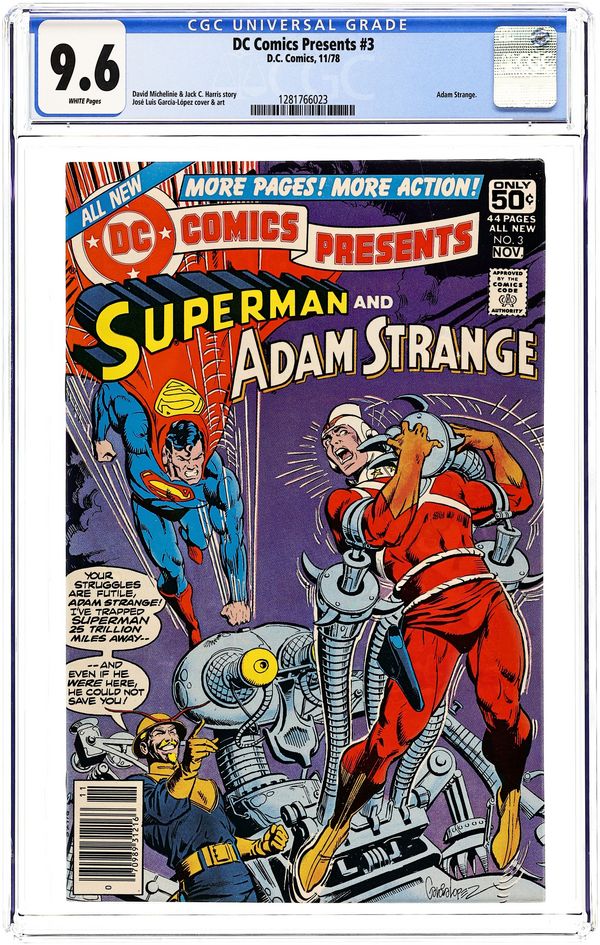 Last 50c cover-priced issue. The Riddle of Little Earth Lost - Written by David Michelinie with Jack C. Harris (Adam Strange consultant). Art and Cover by José Luis García-López. When Earth and Rann switch places, Superman and Adam Strange must handle disasters on each other's planet and try to get their home worlds back where they belong. Characters in this issue: Superman [Clark Kent]; Adam Strange; Kaskor (villain); Sardath; Alanna; Lois Lane. Plus: DC Profiles #42 - Robert Kanigher. And: 1-page Hostess Fruit Pies ad "Batman and the Corsair of Crime" with art by Curt Swan and Vince Colletta. 40 pages, full color. Cover price $0.50.