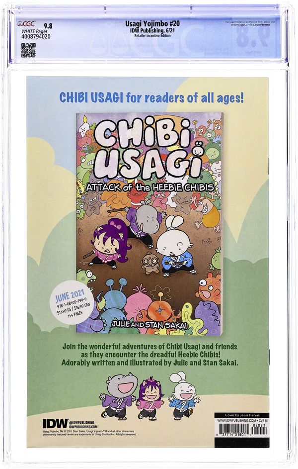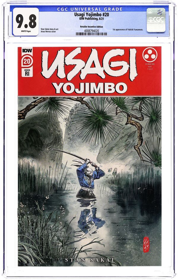 Limited 1 for 10 Retailer Incentive Variant Cover. Written and Art by Stan Sakai. Cover by Jesus Hervas. Yukichi, part one. The introduction of a new recurring character as Usagi encounters a young swordmaster carrying out the dying wish of his master. Yukichi must deliver Itsuki-Sensei's swords to his nephew, Daido, who will take over his school. However, they must pass through the territory of a rival school intent on possessing that heirloom.