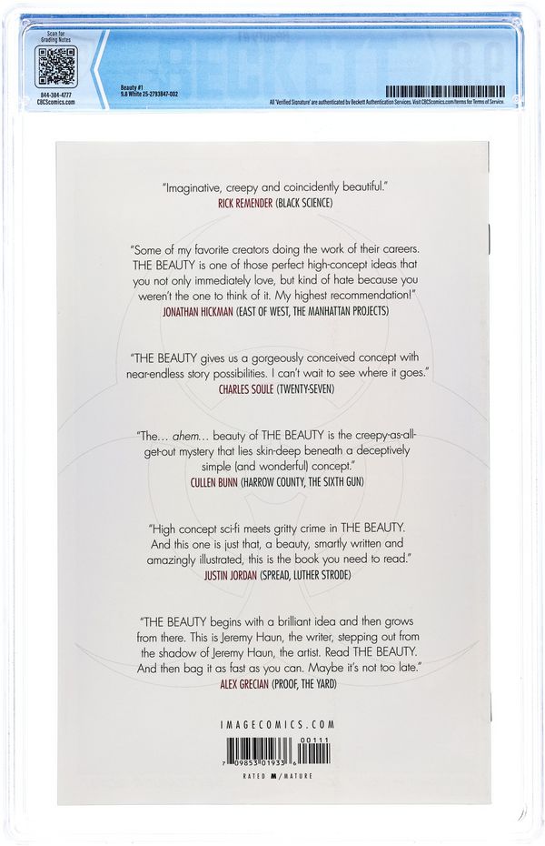 Written by Jeremy Haun and James A. Hurley. Art and Cover by Jeremy Haun. THE PILOT SEASON WINNER RETURNS! Modern society is obsessed with outward beauty. What if there was a way to guarantee you could become more and more beautiful every day? What if it was a sexually transmitted disease? In the world of The Beauty, physical perfection is attainable. The vast majority of the population has taken advantage of it, but Detectives Foster and Vaughn will soon discover it comes at a terrible price. 28 pages, full color. Rated M Cover price $3.50.