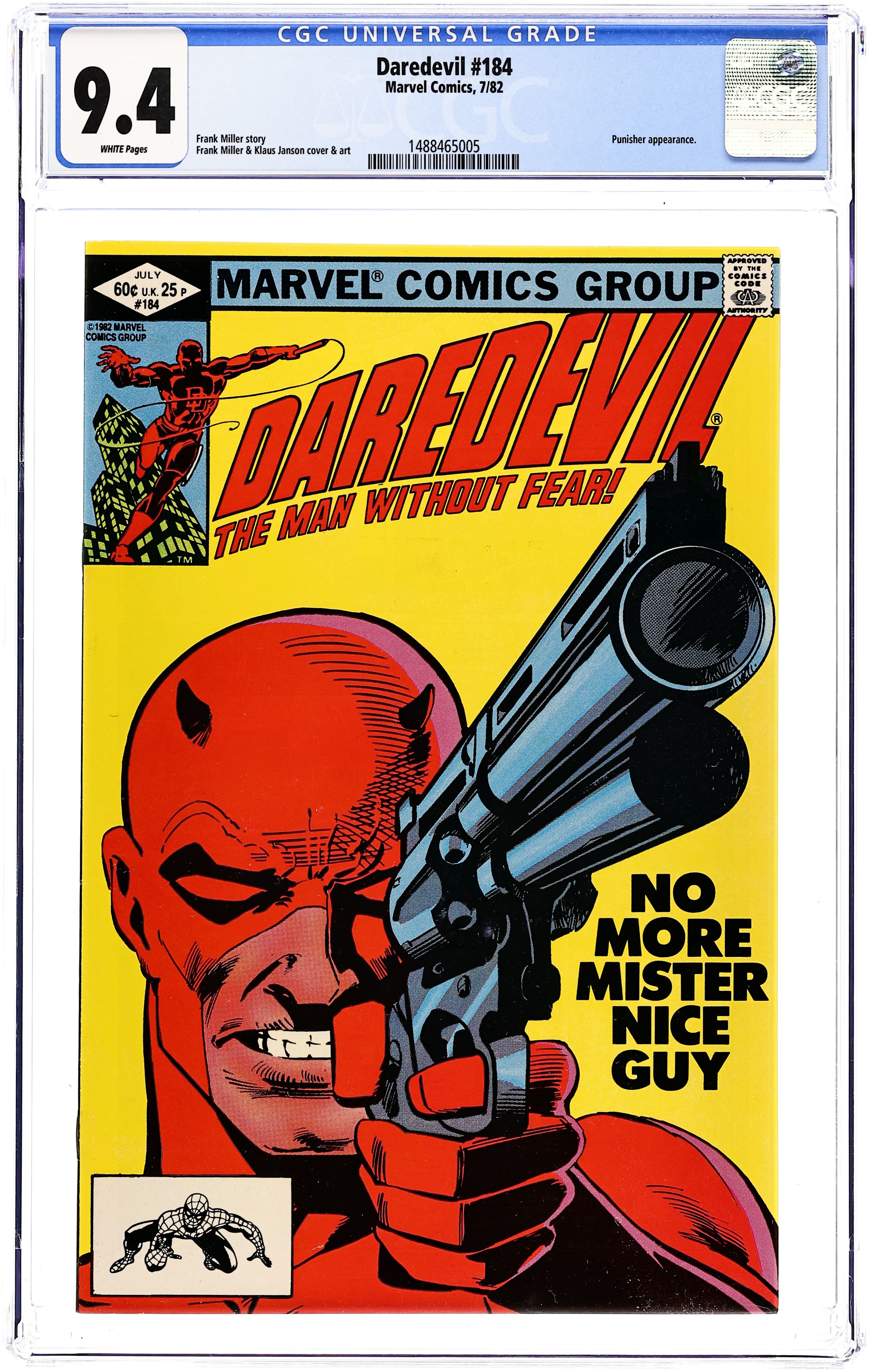 Ends Dec 15 8:07 PM CST Bid History 10 bids Current Bid $105 Your Secret Max Bid If you'd like to bid, please log in or register. Direct Edition. Cover pencils by Frank Miller, inks by Klaus Janson. Good Guys Wear Red!, script by Frank Miller and Roger McKenzie (uncredited), pencils by Frank Miller, inks by Klaus Janson; DD and the Punisher hunt down Hogman for selling drugs to kids, but the two heroes clash over their methods; DD ends up shooting the Punisher with his own gun; 2nd part of Angel Dust story originally rejected by the CCA. Letter to the editor from comics editor Diana Schutz. 36 pgs. Cover price $0.60. Cover price $0.60.