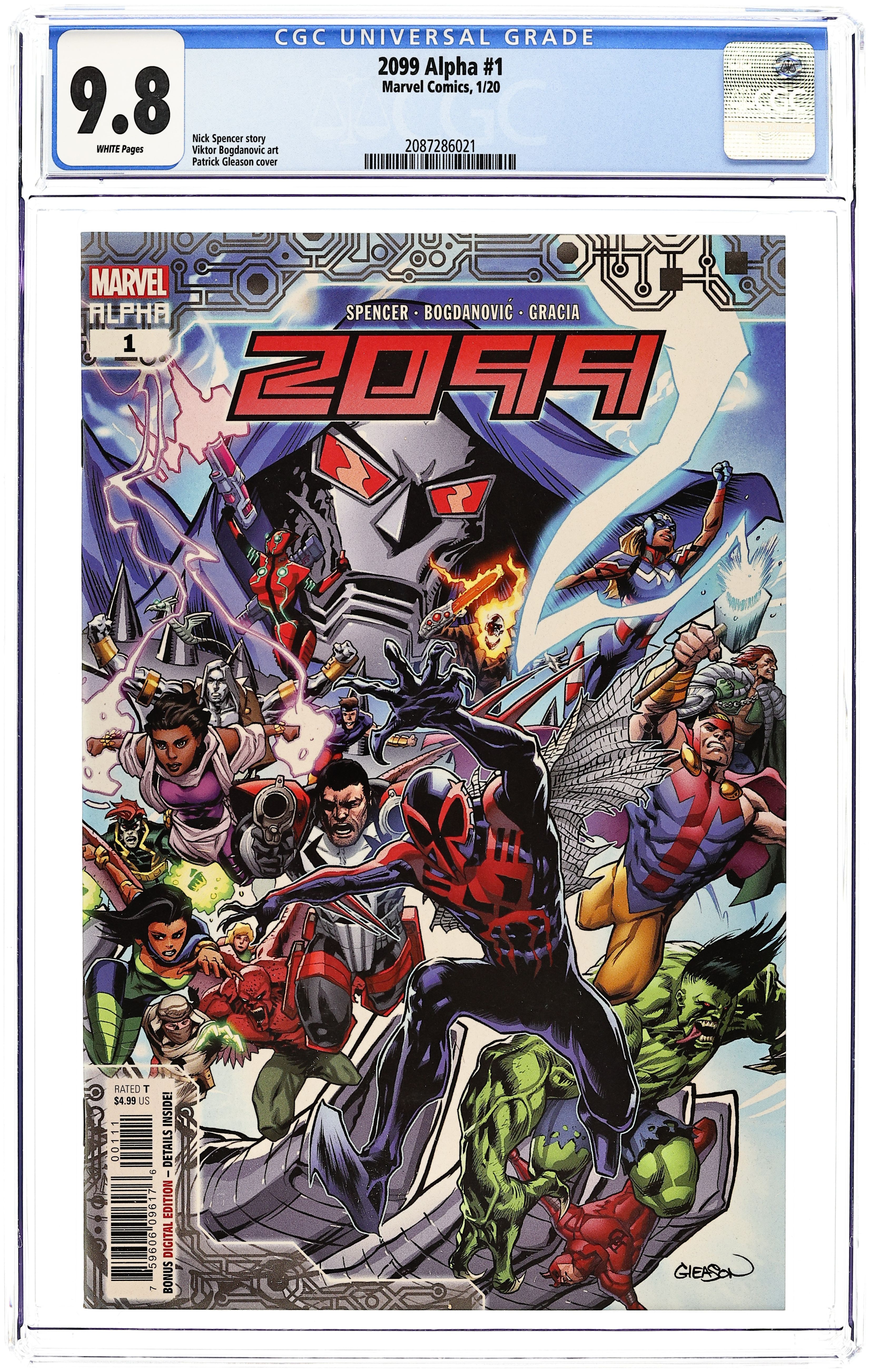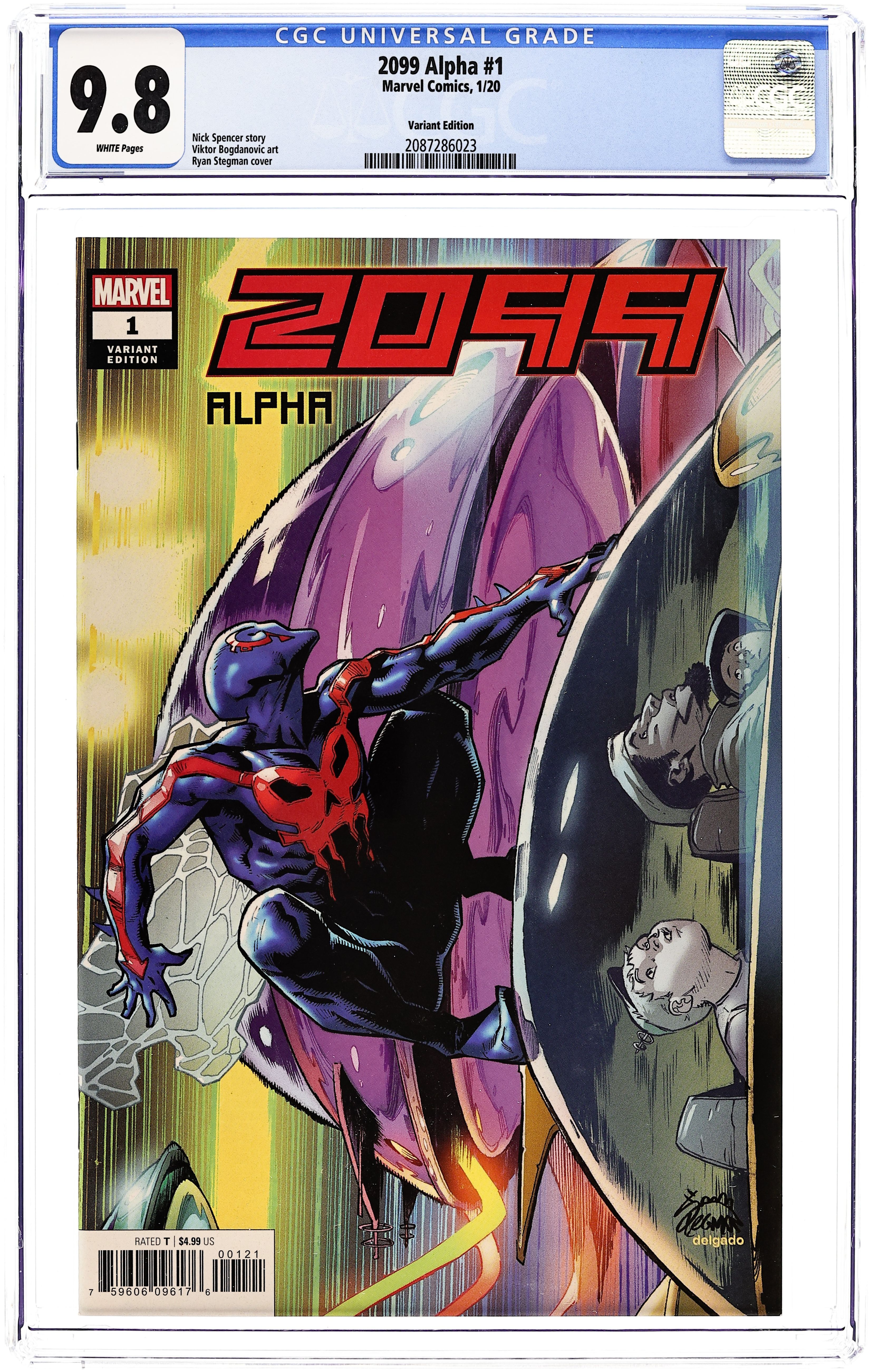 Limited 1 for 50 Retailer Incentive Variant Cover. Written by Nick Spencer. Art by Viktor Bogdonovic. Cover by Ryan Stegman. 80 years ago, the Marvel Universe was born. 80 years from now, will it die?! THE FUTURE IS IN PERIL! Events of AMAZING SPIDER-MAN have been leading to this for months. Something is happening in 2099 that spans Nueva York and beyond and will shake up the official Marvel Future forever. This is not a drill! 36 pages, full color. Rated T Cover price $4.99.