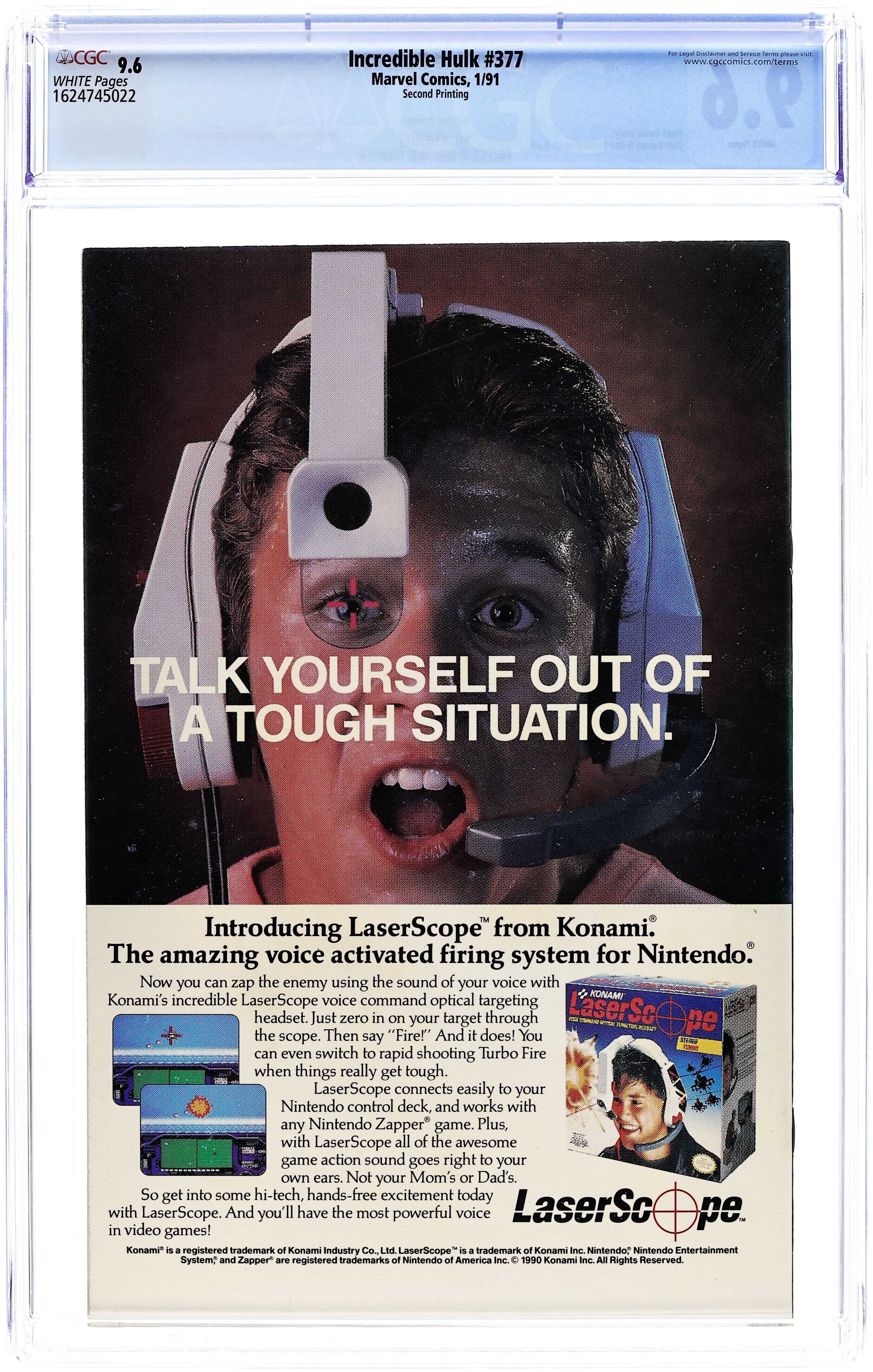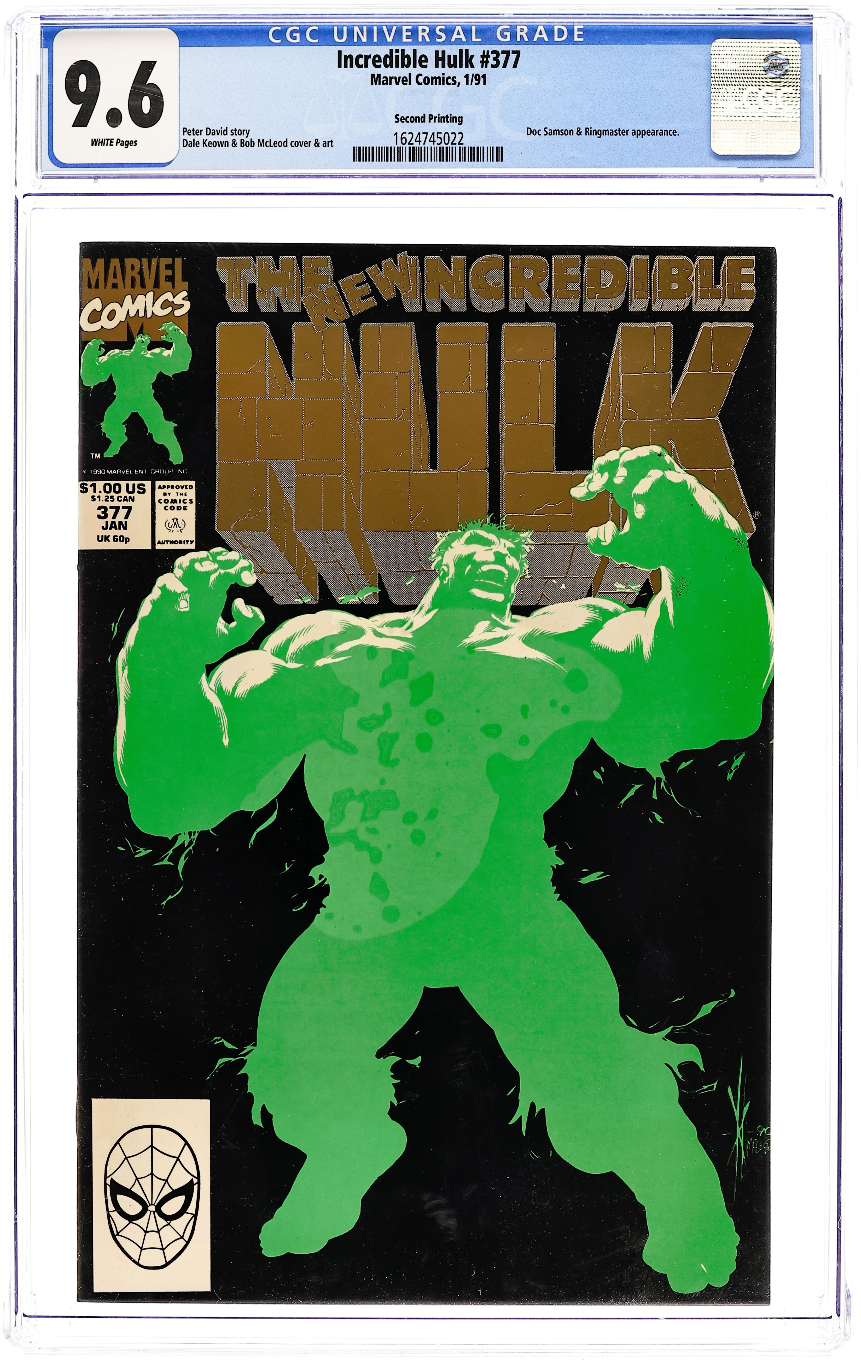 2nd printing. "Honey, I Shrunk the Hulk." Guest-starring Doc Samson. Story by Peter David. Art by Dale Keown and Bob McLeod. Ever wonder why the Hulk is so darn mad all the time? Super psychiatrist Doc Samson sits down with perhaps the most fractured psyche in the world and finds out what makes Bruce Banner tick. Samson, grey Hulk, green Hulk, and Banner delve deep into the scientist's sub-conscious and what they find will shock you. By story's end Bruce Banner and the Hulk will never be the same again. 40 pages. Cover price $1.00.