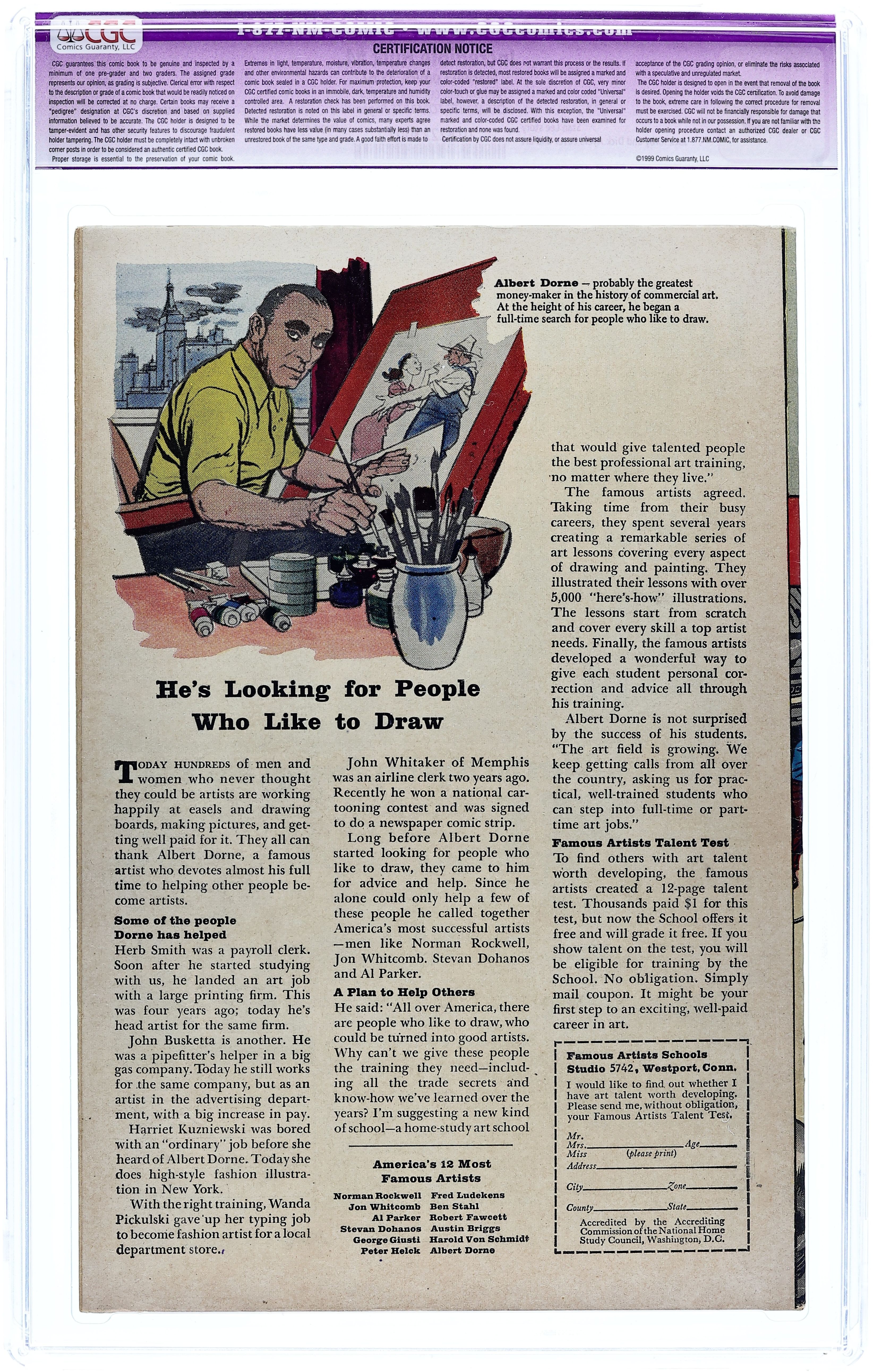 CGC is a comic book grading company. Comics that are submitted to CGC are graded by professional graders on a 10 point scale and then sealed inside a hard plastic cotainer to prevent tampering.