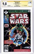 Limited 1 for 25 Retailer Incentive Variant Cover. Written by Roy Thomas. Art by Howard Chaykin. Cover by Jerry Ordway. Months before the first Star Wars movie had even arrived in theaters, Marvel Comics STAR WARS #1 hit the stands and introduced eager readers to a galaxy far, far away! Its cover asked: Luke Skywalker: Will he save the galaxy or destroy it? – and inside, readers eager to know the answer joined Luke on the first, fateful steps of his epic journey from the deserts of Tatooine to the very heart of the Rebellion! This opening chapter of Marvels adaptation of George Lucas cinematic masterpiece features the debuts of some of the most beloved characters in cinematic history – including Princess Leia, R2-D2, C-3PO and, of course, the ruthless enforcer of the Galactic Empire, Darth Vader! Its one of the all-time great Marvel comic books, boldly re-presented in its original form, ads and all! Reprinting STAR WARS (1977) #1. 32 pages, full color. Rated T Cover price $4.99.