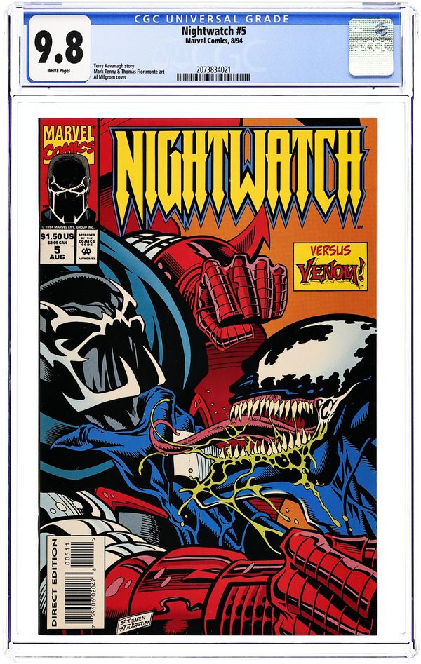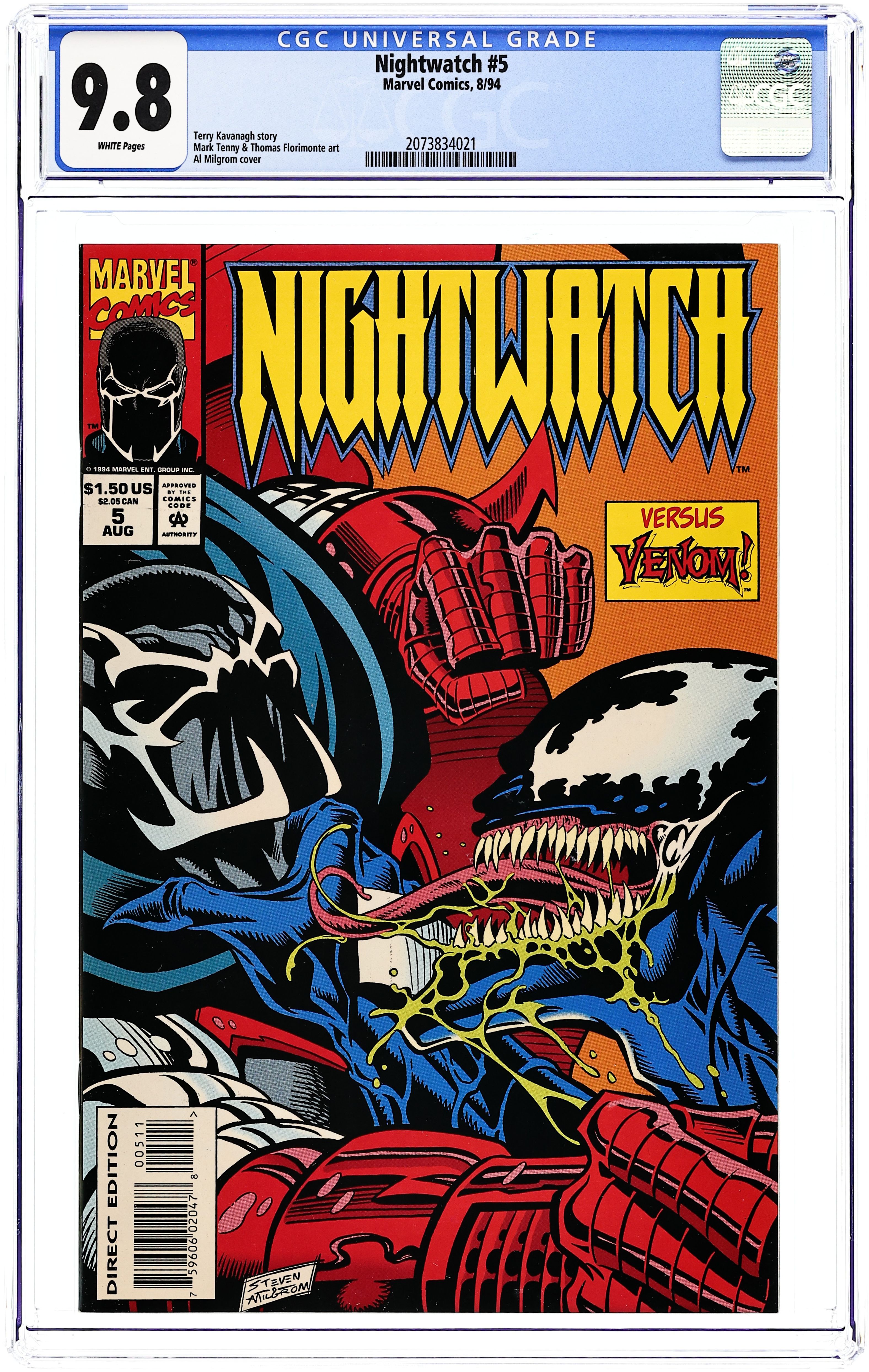 Whispers in the Dark - Written by Terry Kavanagh. Art by Mark Tenney and Thomas Florimonte. Cover by Steven Butler and Al Milgrom. Nightwatch, Marvel's ill-fated hero, goes up against the Lethal Protector, Venom! Does he have what it takes to fight Venom? The answer lies within. 32 pages, full color. Cover price $1.50.