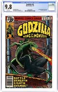 "The Coming!" Guest-starring Nick Fury and S.H.I.E.L.D. Story by Doug Moench. Art by Herb Trimpe and Jim Mooney. The slumbering leviathan known as Godzilla has awaken and rises out of the sea off the shores of Alaska. This reptilian titan has already left Japan devastated and now has made his way to America. With a tail that can smash mountains to dust and fiery breath born out of the Atomic Age, is there anything that can stop this monster's rampage? Right from the Toho Productions' famed movie series comes Godzilla, King of the Monsters. Cover price $0.30.