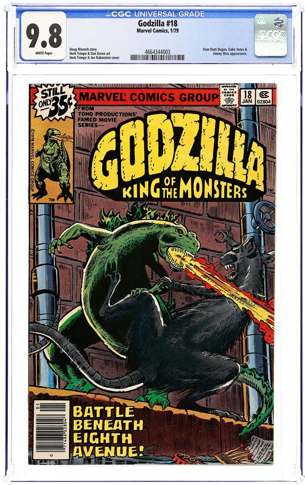 "Titan Times Two!" Part 3 of 3. Story by Doug Moench. Art by Herb Trimpe. The mighty Godzilla has made his way to a Nuclear Missile Installation and the only thing standing in his way and a potential holocaust-sized disaster is the giant robot Red Ronin, piloted by 12 year old Rob Takiguchi. Cover price $0.35.