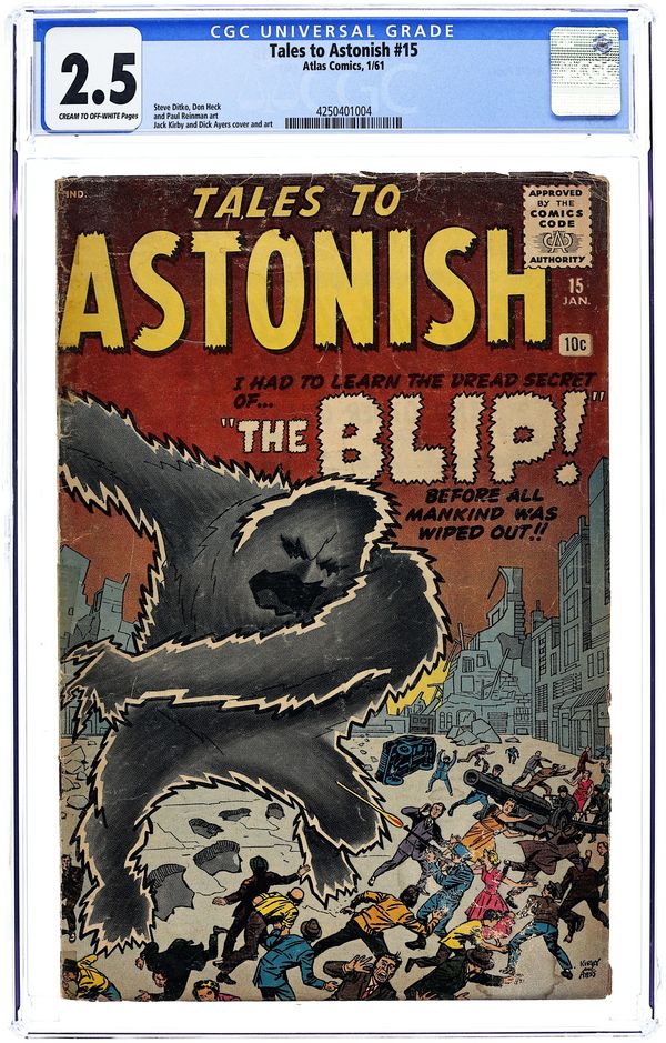 Cover by Jack Kirby and Dick Ayers. I Learned the Dread Secret of the Blip!, art by Jack Kirby and Dick Ayers; A power drain and radar anomaly is traced to a creature made of electricity hiding in a cave. The Free Ride text story. I Dared Enter the Forbidden World!, art by Don Heck; A white game hunter finds the legendary elephant's graveyard, hoping to make a fortune in ivory. I Am the Invisible!, art by Steve Ditko; A man threatens a witch unless she hands over two lenses which will make him invisible. I Defied the Curse of Tut-Ah-Anka!, art by Paul Reinman; A criminal hides from the police in an old Egyptian tomb, ignoring the warning of a curse. 36 pgs., full color. $0.10. Cover price $0.10.