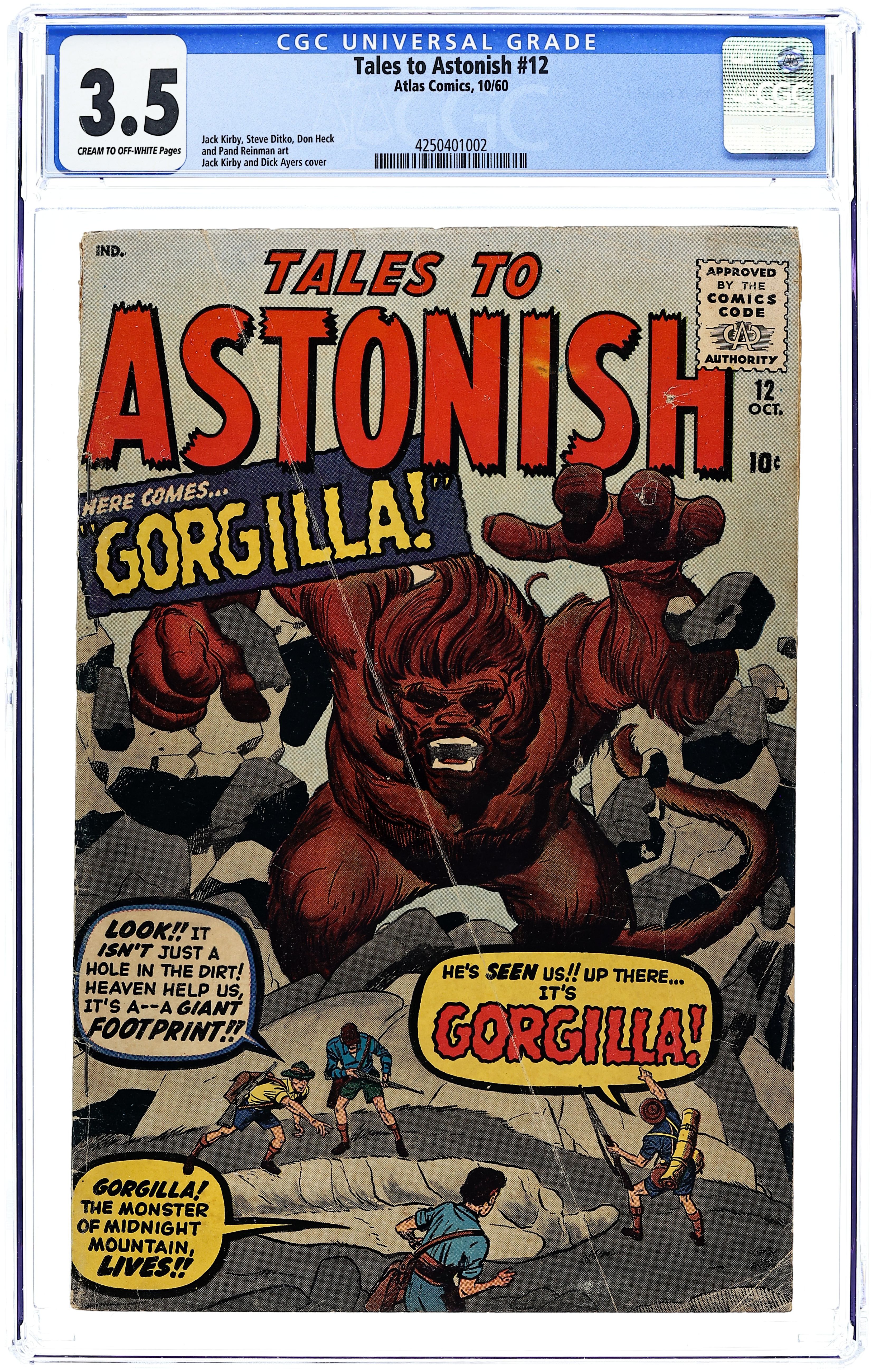 Cover by Jack Kirby and Dick Ayers. I Discovered Gorgilla! The Monster of Midnight Mountain!, art by Jack Kirby and Steve Ditko; An expedition finds the missing link between apes and humans in Borneo. The Sorcerer text story, art by Joe Maneely. My Nightmare Has No End!, art by Don Heck; A man meets an extradimensional being in his nightmares. Save Me! Save Me!, art by Paul Reinman; A scientist makes himself able to walk on water in order to steal secret military plans from a ship. A Monster Waits Outside!!, art by Steve Ditko; An astronaut is sent into orbit in a tiny sphere without communication. 36 pgs., full color. $0.10. Cover price $0.10.