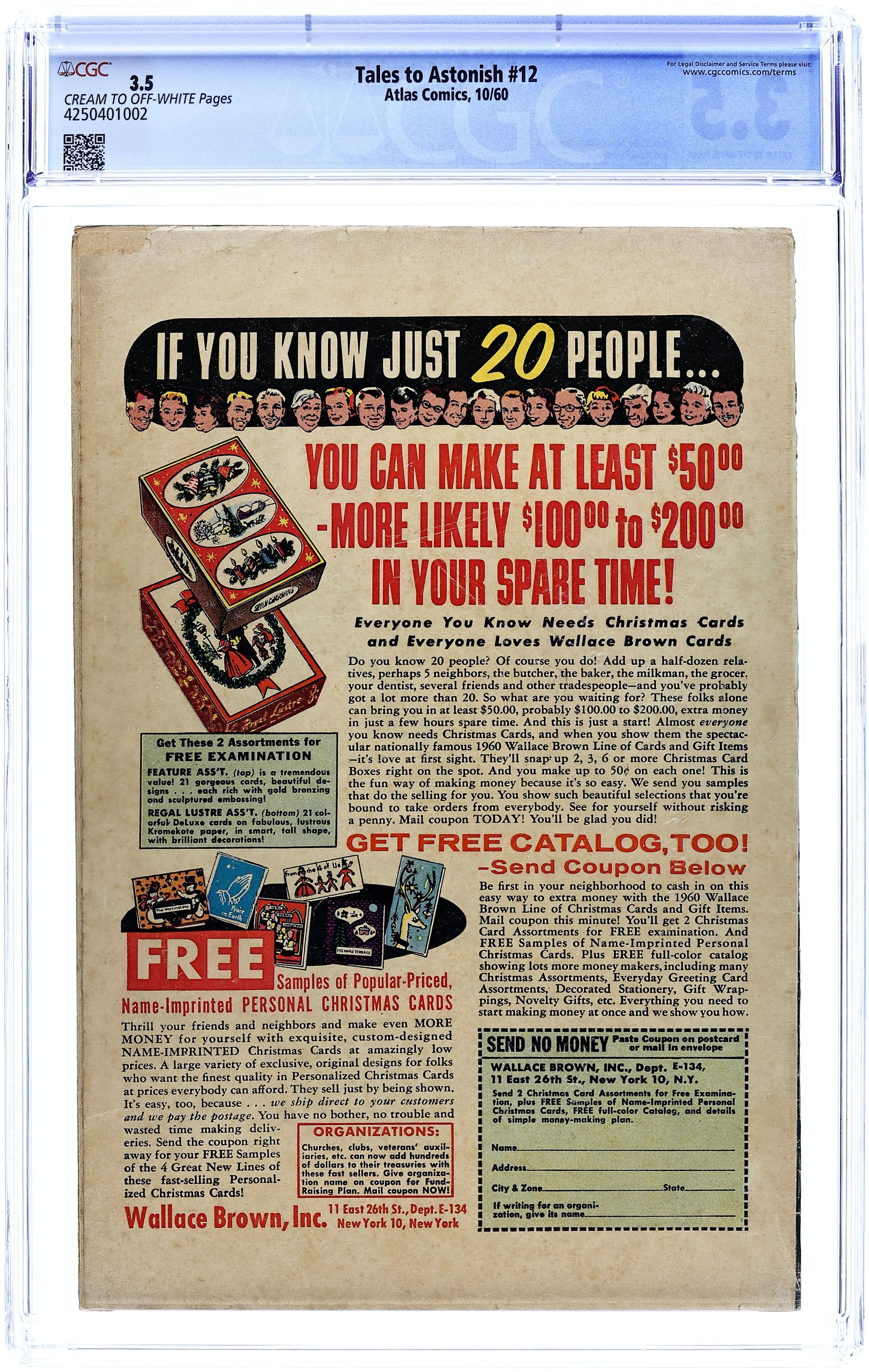 Cover by Jack Kirby and Steve Ditko. I Created Krang! The Most Fantastic Monster The World Has Ever Known!, Chapter One, art by Jack Kirby and Dick Ayers; A scientist's formula makes an ant giant and super-intelligent. Chapter Two: Krang!, art by Jack Kirby and Dick Ayers. The Remedy Oil text article, art by Marie Severin. Behold! I Am the Master of Time!, art by Steve Ditko; In a black magic book, a thief finds instructions for creating a time machine which runs on electricity, but after robbing people in the 18th century and attempting to return to the 20th, he realizes he is stuck in the past because there is no electricity in the 18th century. The Thing in Human Form!, art by Don Heck; A Martian is sent to Earth to kidnap a human scientist who has invented a weapon that Mars wants to use against Jupiter. 36 pages, full color. Cover price $0.10.