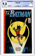 First printing. Direct Edition. Cover art by Mike Mignola. "A Death in the Family" part 1 of 4, script by Jim Starlin, pencils by Jim Aparo, inks by Mike DeCarlo; Jason discovers that his "real" mother was really his step-mother, and his birth mother is still alive; Joker escapes from Arkham and Batman chases him to the Middle East where he runs across Jason looking for one of the women he thinks is his mom. Infamous story where readers called an 800 number, and 'voted' to have Robin killed! Story continues in Batman #427. NOTE: Most issues from 397-432 were reprinted in 1989 and sold in multipacks. These 2nd and 3rd prints have back cover ads dated 1989. 52 Pages, Full Color. Cover price $1.50.