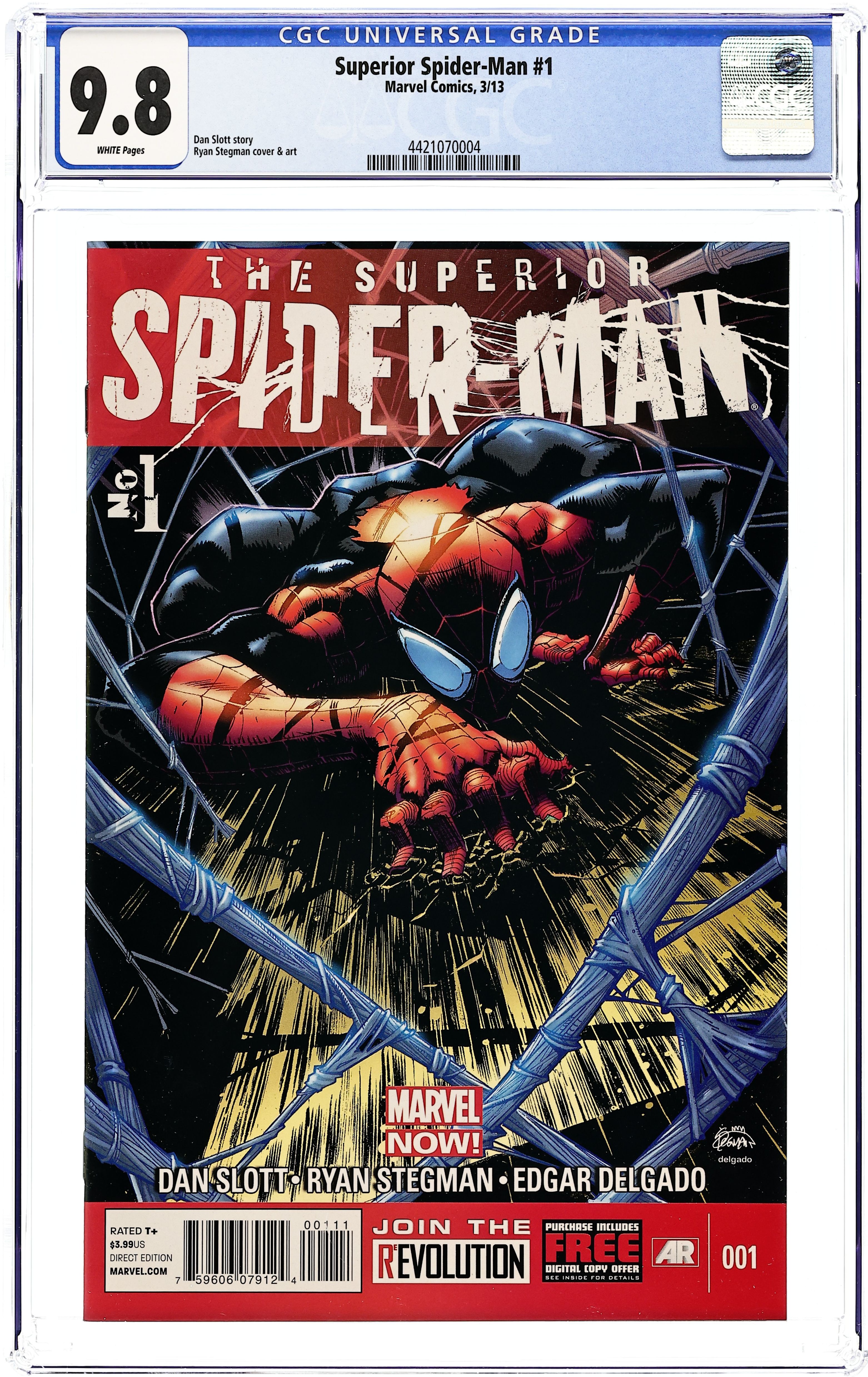 Cover by Ryan Stegman (W) Dan Slott (A) Ryan Stegman THEN!...Peter Parker spent a lifetime living up to the responsibilities his powers foisted upon him but his Amazing story finally ended dramatically in the historic Spider-Man #700. NOW!...The new Amazing Spider-Man has arrived and he is better in every single way. Smarter, stronger...Superior. Cover price $3.99.