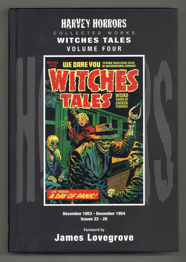 Starts Apr 27 Volume 4 - 1st printing. "December 1953 to December 1954!" Collects Witches Tales (1951-1954 Harvey) #22-28. Foreword by James Lovegrove. Here, in one of the final volumes in Harvey's groundbreaking quartet of gore and mayhem, we find the writers and artists working at the zenith of their powers and talents. You cannot afford to miss this one! Hardcover, 288 pages, full color. Cover price $47.99.