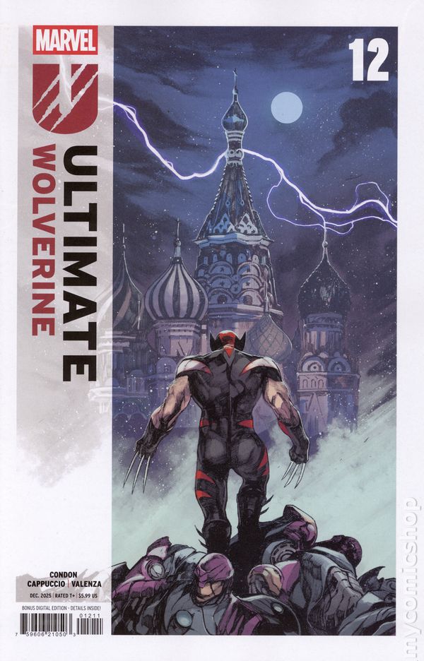(W) Christopher Condon (A) Alessandro Cappuccio (CA) Alessandro Cappuccio WOLVERINE'S ATTACK ON THE EURASIAN CAPITAL! After the devastation in ULTIMATE WOLVERINE #11, Wolverine is out for vengeance! And he's taking on the whole of the Eurasian Republic in this big, bad and bloody climactic issue…who will be left standing? 32 pages, rated T+, Full Color Cover price $5.99.