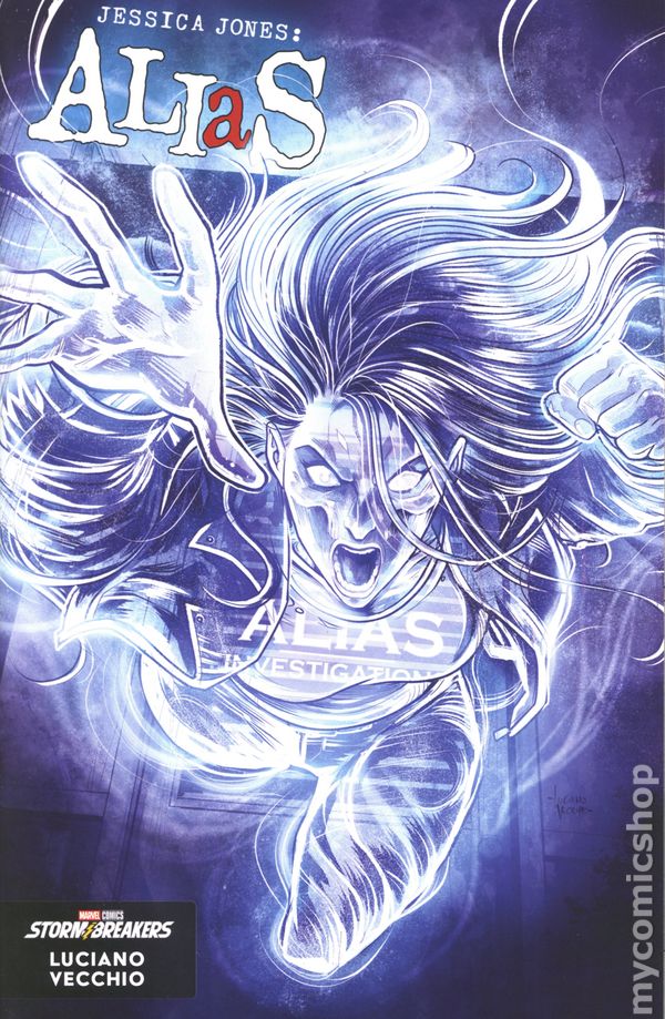 (W) Sam Humphries (A) Geraldo Borges (CA) Luciano Vecchio THE RETURN OF JESSICA JONES! A series of grisly murders in Hell's Kitchen pulls JESSICA JONES into a mystery more sinister than she could've ever imagined. As the wife of Mayor LUKE CAGE, she'll have to tread carefully as she forms a dangerous alliance with TYPHOID MARY to track down the killer. But as she delves deeper into Hell's Kitchen's dark underbelly, the evidence she finds presents more questions than answers… Follow the mystery in an all-new RED BAND miniseries written by SAM HUMPHRIES (NEW AVENGERS, LEGENDARY STAR-LORD) and drawn by Geraldo Borges (THUNDERBOLTS), celebrating the 25th Anniversary of ALIAS! Cover price $4.99.