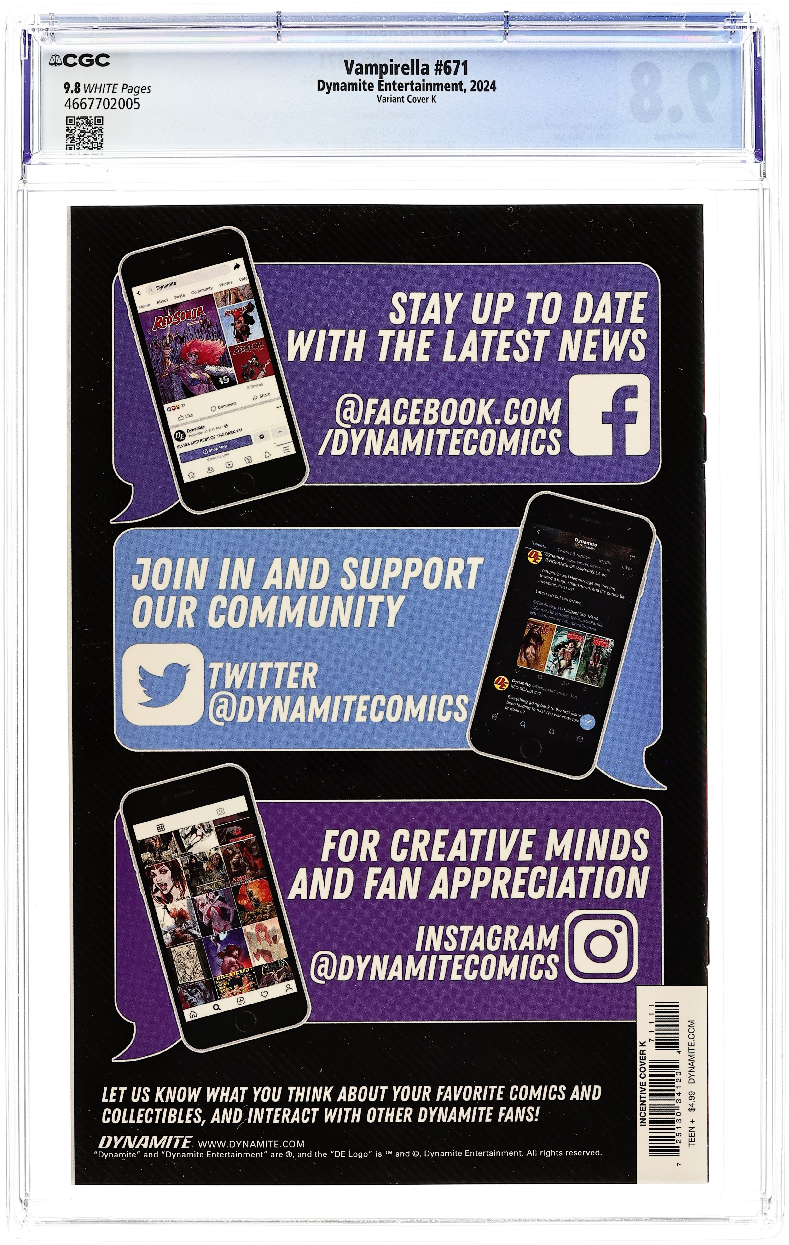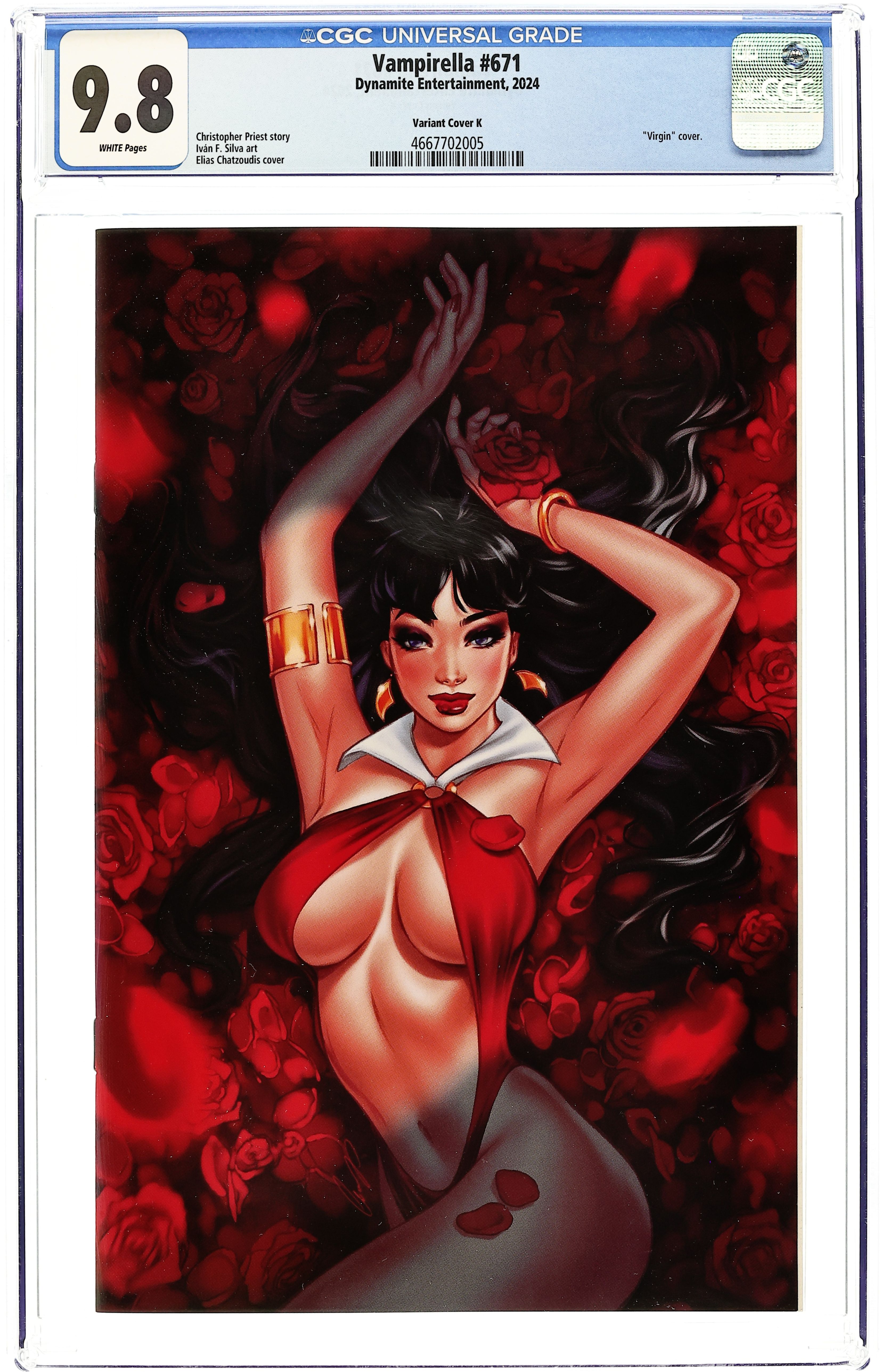 Tags: VampirellaPublished Jul 2024 by Dynamite Entertainment.Vampirella (2024 Dynamite) 670K CGC 9.8 Chatzoudis Virgin 1:20 Variant