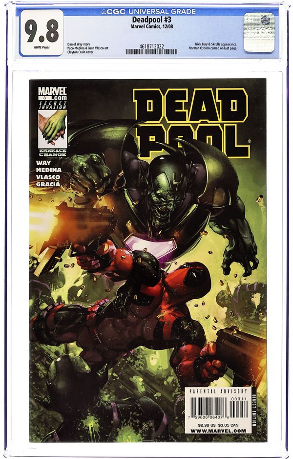 Tags: Marvel Legacy Numbering: Deadpool (part 145), Secret Invasion (part 7.02)Deadpool (2008 2nd Series) 3A CGC 9.8 CRAIN