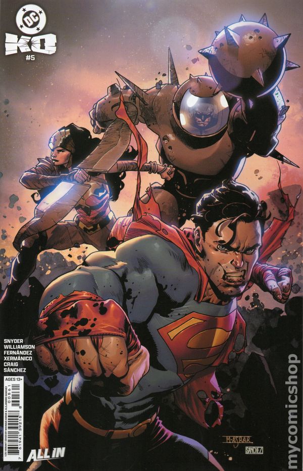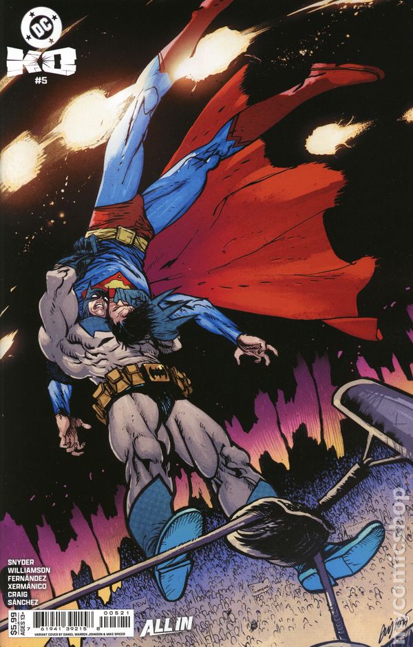Foil Variant. (W) Scott Snyder (A/CA) Javier Fernandez DC'S MAJOR 2025 EVENT IS HERE! SCOTT SNYDER AND JAVIER FERNANDEZ WELCOME YOU TO THE SLUGFEST OF THE CENTURY! The Heart of Apokolips has transformed Earth into a hellscape in preparation for the return of Darkseid! The end of the DC Universe is here! The Justice Leagues only chance to defeat Darkseid is to enter a deadly tournament, an epic and over-the-top battle royale that will surprise you! The Worlds Greatest Heroes fight to become the champion to enter the ring against Darkseid, but theres a catch...the closer you get to the Heart of Apokolips, the more it corrupts you, changes you into something dangerous. Which DC character has what it takes to make it to the end? Who is willing to do what it takes to win it all, even if it means taking down their friends and family? You want to get nuts? Lets get nuts! 12 pages, full color, not rated. Cover price $9.99.