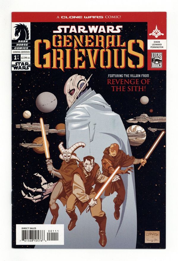 Tags: Star WarsPublished Mar 2005 by Dark Horse.$18.00CHUCK DIXON (W), RICK LEONARDI (P), and MARK PENNINGTON (I) On sale March 16, FC, 32pg, $2.99 On a rescue mission to Vandos, Padawan Flynn Kybo and his master T'chooka D'oon come face to face with one of the leaders of the Separatist army, General Grievous. After Grievous kills his master, Kybo goes to the Jedi Council with a plan to take out the General before more lives are lost. But when the council rebukes his plan, Flynn Kybo decides to take matters in his own hands. Seeking out others who feel the same as himself, Flynn Kybo sets out to stop the killing machine known as General Grievous before more Jedi lives are lost. Meanwhile, Grievous has hijacked a transport ship and its precious cargo may give him an advantage over the Jedi that they would never expect... ? A four-issue must read series featuring one of the Episode III villians! Cover price $2.99.