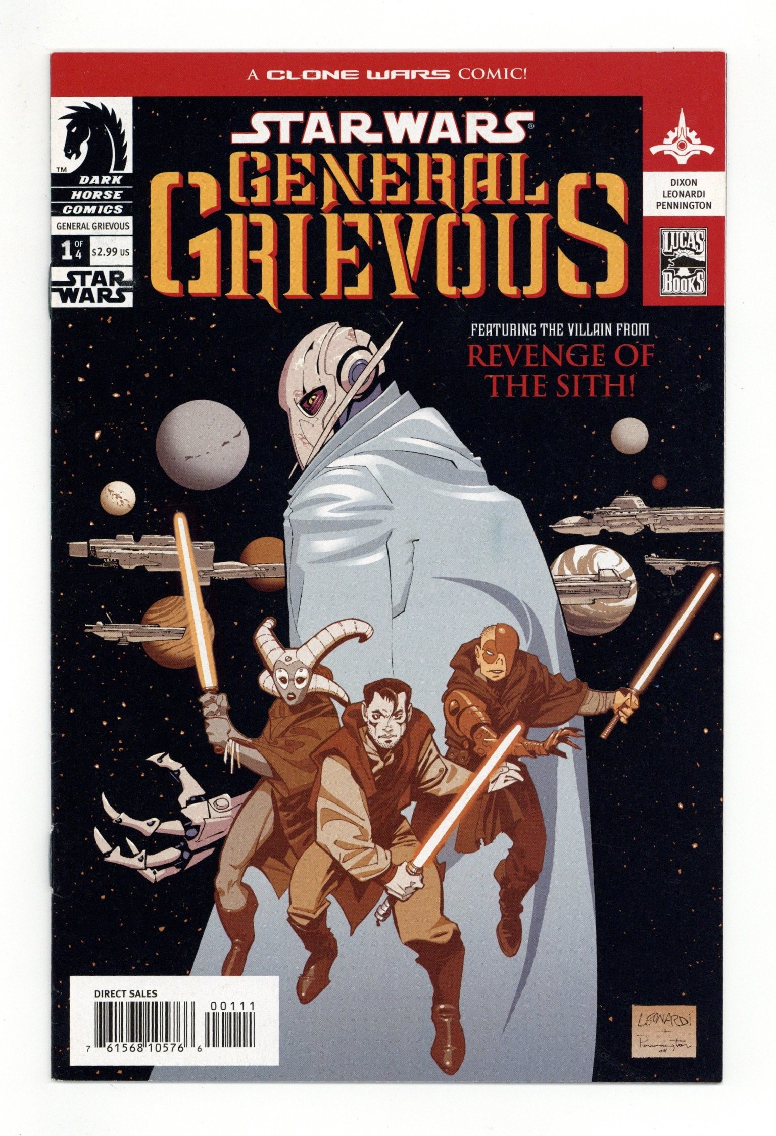 CHUCK DIXON (W), RICK LEONARDI (P), and MARK PENNINGTON (I) On sale March 16, FC, 32pg, $2.99 On a rescue mission to Vandos, Padawan Flynn Kybo and his master T'chooka D'oon come face to face with one of the leaders of the Separatist army, General Grievous. After Grievous kills his master, Kybo goes to the Jedi Council with a plan to take out the General before more lives are lost. But when the council rebukes his plan, Flynn Kybo decides to take matters in his own hands. Seeking out others who feel the same as himself, Flynn Kybo sets out to stop the killing machine known as General Grievous before more Jedi lives are lost. Meanwhile, Grievous has hijacked a transport ship and its precious cargo may give him an advantage over the Jedi that they would never expect... ? A four-issue must read series featuring one of the Episode III villians! Cover price $2.99.