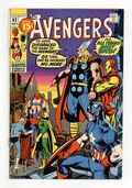 "All Things Must End!" Part 4 of 9. Guest-starring Captain Marvel. Script by Roy Thomas. Pencils by Sal Buscema. Inks by George Roussos. Cover by Neal Adams and Tom Palmer. The Avengers' Alaskan adventure is over, but the fallout from their clash with the Kree is just beginning! The federal government is incensed that Earth's Mightiest Heroes are protecting Captain Marvel after the aborted Kree invasion! So the Alien Activities Commission summons the Avengers to testify! But the political deck is stacked against the heroes and the national sentiment turns against them! When the four avengers return to Fifth Avenue, they're shocked to see their mansion ransacked! And shocked again when Cap, Thor, and Shell-head kick them out of it! What a stunning turn of events! Where do Wanda, Pietro, Goliath, and the Vision go from here? Cameo appearances by Nick Fury, Dum Dum Dugan, Mr. Fantastic, the Thing, and the Super-Skrull. Avengers Lineup: Goliath, Quicksilver, Scarlet Witch, and the Vision. Last 15¢ issue. (Notes: This issue features a classic Neal Adams cover (with inks by Tom Palmer) -- perhaps the most well-known of the five covers that Adams drew for the Avengers title. The letters page contains a letter from comics writer David Michelinie.) 36 pgs. Cover price $0.15.