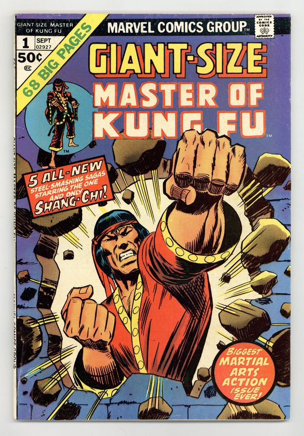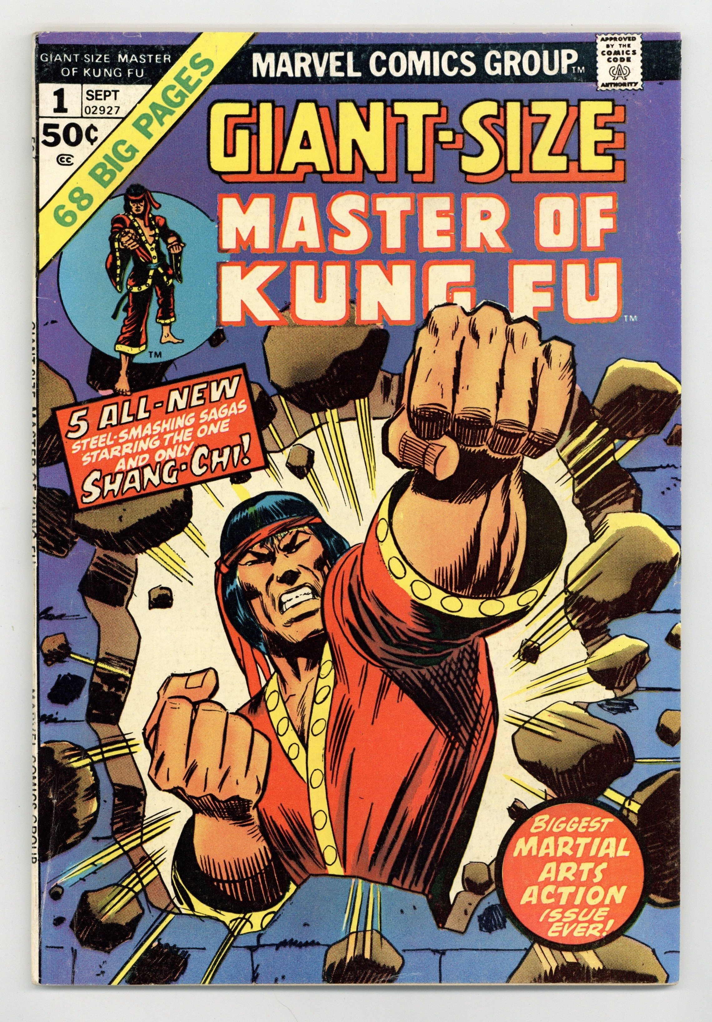 Tags: Martial Arts$12.50Five all new stories starring Shang Chi the Master of Kung Fu. First, on Shang Chi's birthday he is hounded and accosted on all sides by agents of his hated father who seeks Chi's death. "Death Masque!" Story by Doug Moench. Art by Paul Gulacy and Dan Adkins. Then, Shang Chi finds mystery and suspense in Miami in "Frozen Past, Shattered Memories." Story by Doug Moench. Art by Craig Russell. Includes a two page demonstration of Shaolin Boxing with Iron Fist and a reprinting of the first appearance of the arch villain from the 1950's Yellow Claw. Finally, the back-up tale "Reflections in a Rippled Pool!'' Story by Doug Moench. Art by Ron Wilson and Mike Esposito. 64 pages. Cover price $0.50.