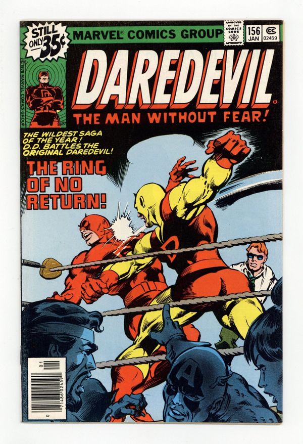 Starts Dec 22 Cover pencils by Gene Colan, inks by Joe Rubinstein. The Avengers (Captain America, the Black Widow, the Beast) and Hercules guest star in Ring of Death!, script by Roger McKenzie, pencils by Gene Colan, inks by Klaus Janson; Matt slips into a coma and has to fight for his life against himself; Death-Stalker makes his move. Hostess Fruit Pie ad; Captain Marvel Meets the Dreadnought. 36 pgs. Cover price $0.35. Cover price $0.35.