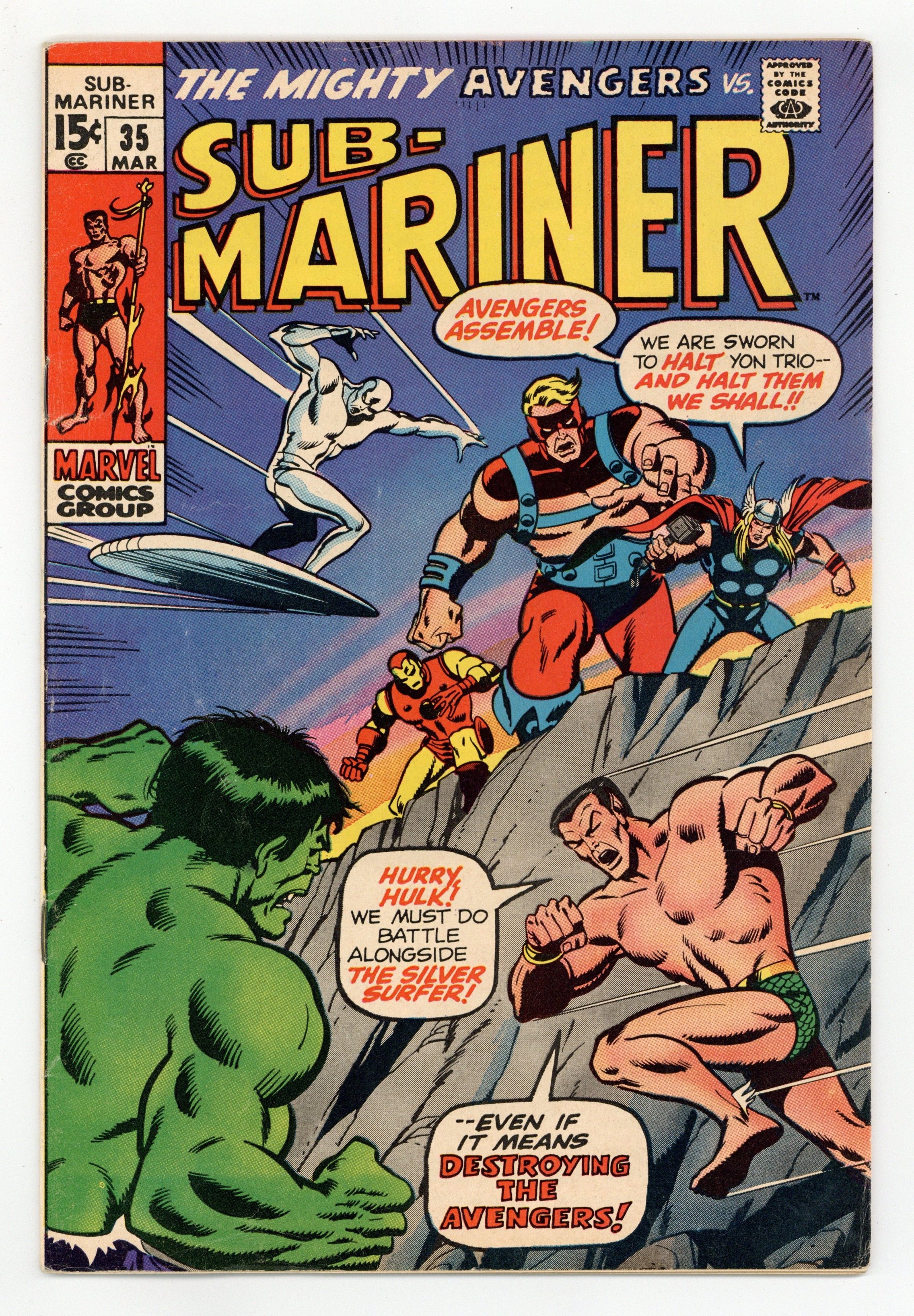 In this prelude to 1st Defenders story, "Confrontation!," Part 2 of 2 - Namor, the Hulk and the Silver Surfer team up to battle the Avengers in a storyline that hints that the three will be teaming up again. Story by Roy Thomas with Sal Buscema art and inks by Jim Mooney. Cover price $0.15.