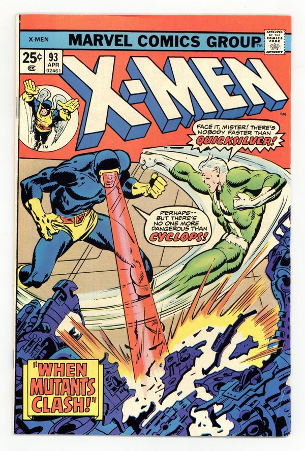 Cover pencils by John Buscema. When Mutants Clash!, script by Gary Friedrich, pencils by Don Heck (layouts) and Werner Roth (finished pencils), inks by John Tartaglione; Cyclops escapes from the Brotherhood, who hold the rest of the X-Men (other than Angel) prisoners; Cyclops battles Quicksilver; the Avengers tell Cyclops to stay away from him; reprinted from issue 45. The Mechanical Men!, script by Stan Lee, art by Steve Ditko; reprinted from Journey into Mystery #74. 36 pgs. $0.25. Cover price $0.25.