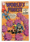 Cover pencils by Curt Swan, inks by Stan Kaye. The Star Creatures, script by Jerry Coleman, pencils by Dick Sprang, inks by Sheldon Moldoff; An alien movie producer captures two criminals, Beaver and Midge, in order to lure Superman, Batman, and Robin to an uninhabited area to film his movie; one by one, he throws bizarre alien creatures into the mix for the purposes of his film. Batman #130 ad. Shorty humor page by Henry Boltinoff. Showcase #25 ad. The Sorcerer from Space starring Tommy Tomorrow, art by Jim Mooney. The Creature from the Crater, script by Ed Herron, art by Lee Elias; Green Arrow and Speedy battle a mechanical Tyrannosaurus Rex while on a trip to the Jungle. 36 Pages, Full Color. Cover price $0.10.