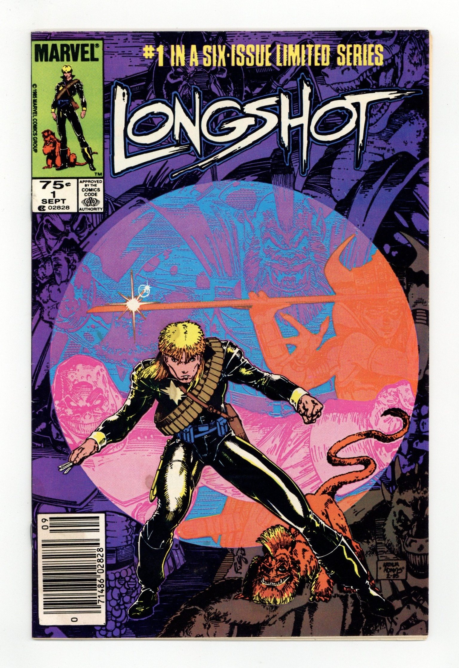 Newsstand Edition. 1st Art Adams pro work. Arriving on Earth unsure of his own identity, Longshot tries to rescue a kidnapped baby in "A Man Without a Past." Script by Ann Nocenti. Pencils by Arthur Adams (his first pro work). Inks by Whilce Portacio & Anderson. Cover by Adams. 1st appearance of Longshot and Spiral. Cover price $0.75.