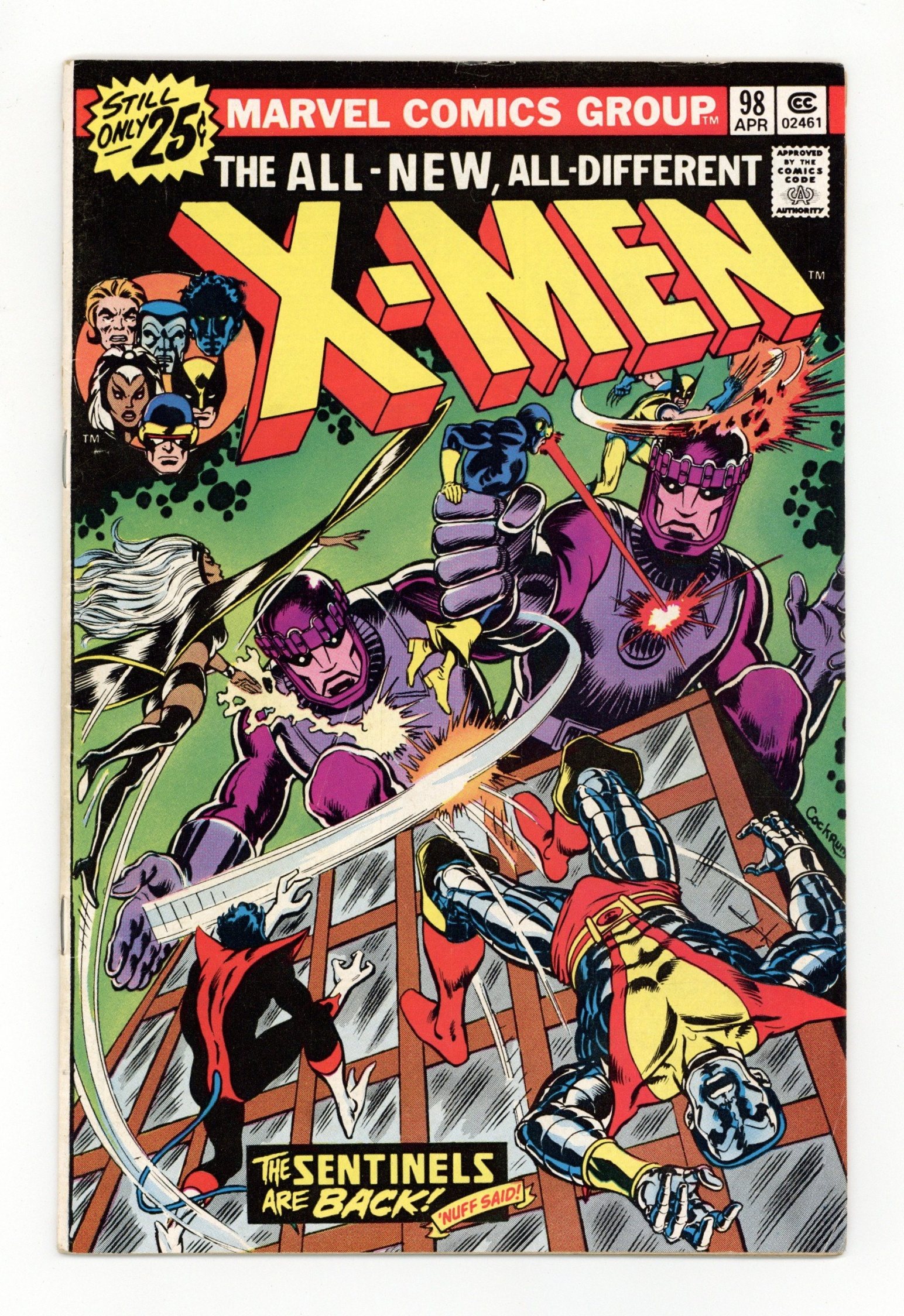 Tags: Print Run Statistics, X-Men$23.00Christmas Issue - "Merry Christmas, X-Men!" Part 1 of 3. Story by Chris Claremont. Art by Dave Cockrum and Sam Grainger. Dave Cockrum cover. It's the Holiday Season and the residents of Xavier's School for the Gifted are about to receive a most unexpected surprise...the mutant hunting Sentinels have returned! But why have these robotic giants attacked now, and who is pulling their strings? The answer will leave the X-Men speechless. 36 pgs. Cover price $0.25.