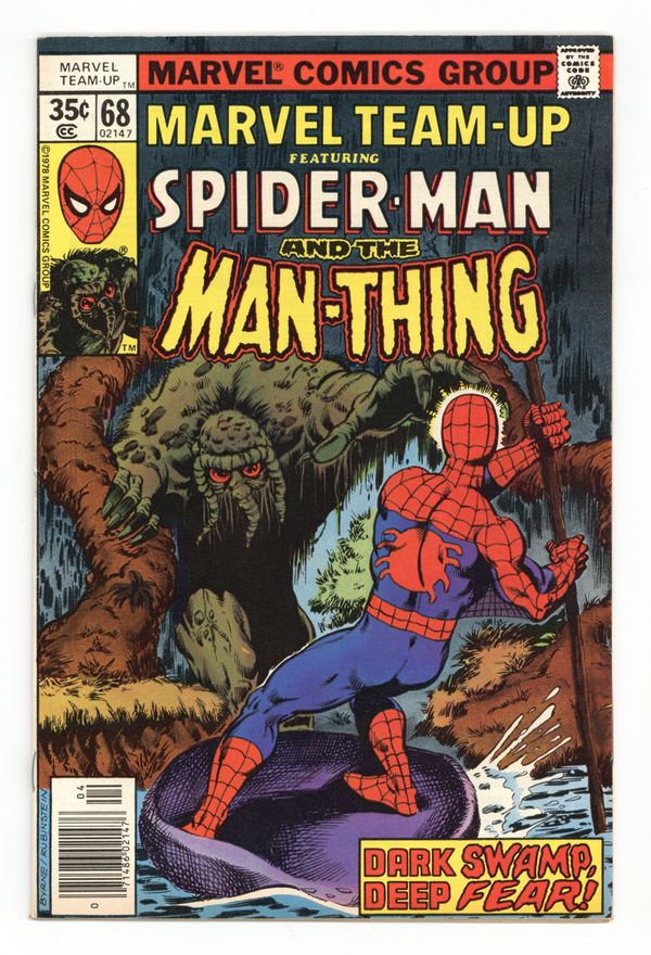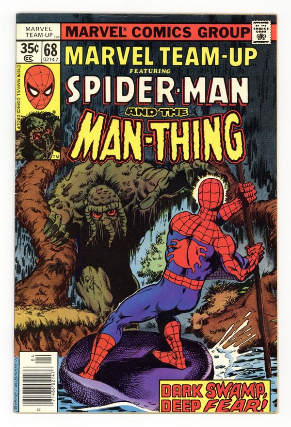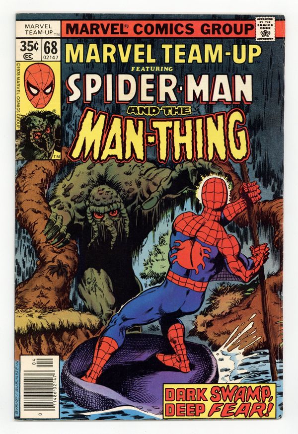 Tags: Spider-Man$31.00"The Measure of a Man!" Guest-starring Spider-Man and the Man-Thing. Script by Chris Claremont. Pencils by John Byrne. Inks by Bob Wiacek. Cover by John Byrne and Joe Rubinstein. Peter Parker and Mary Jane Watson are visiting the circus, when they notice a sad-looking creature imprisoned in a glass cage. It's the Man-Thing! What is he doing in New York? After nightfall, a sympathetic Spider-Man returns to the circus and frees his friend. The trip back to the Everglades is going smoothly until the plane crashes in the Florida swamp! One thing leads to another...and the web-slinger, Man-Thing, and Jennifer Kale wage a savage battle for survival against a new evil villain...D'Spayre! An outstanding story! First appearance of D'Spayre. (Notes: The letters page includes a letter from comics writer Michael Higgins. The back inside cover contains a Star Wars ad with Neal Adams art. This story was reprinted in Marvel Tales 204.) 36 pages. Cover price $0.35.