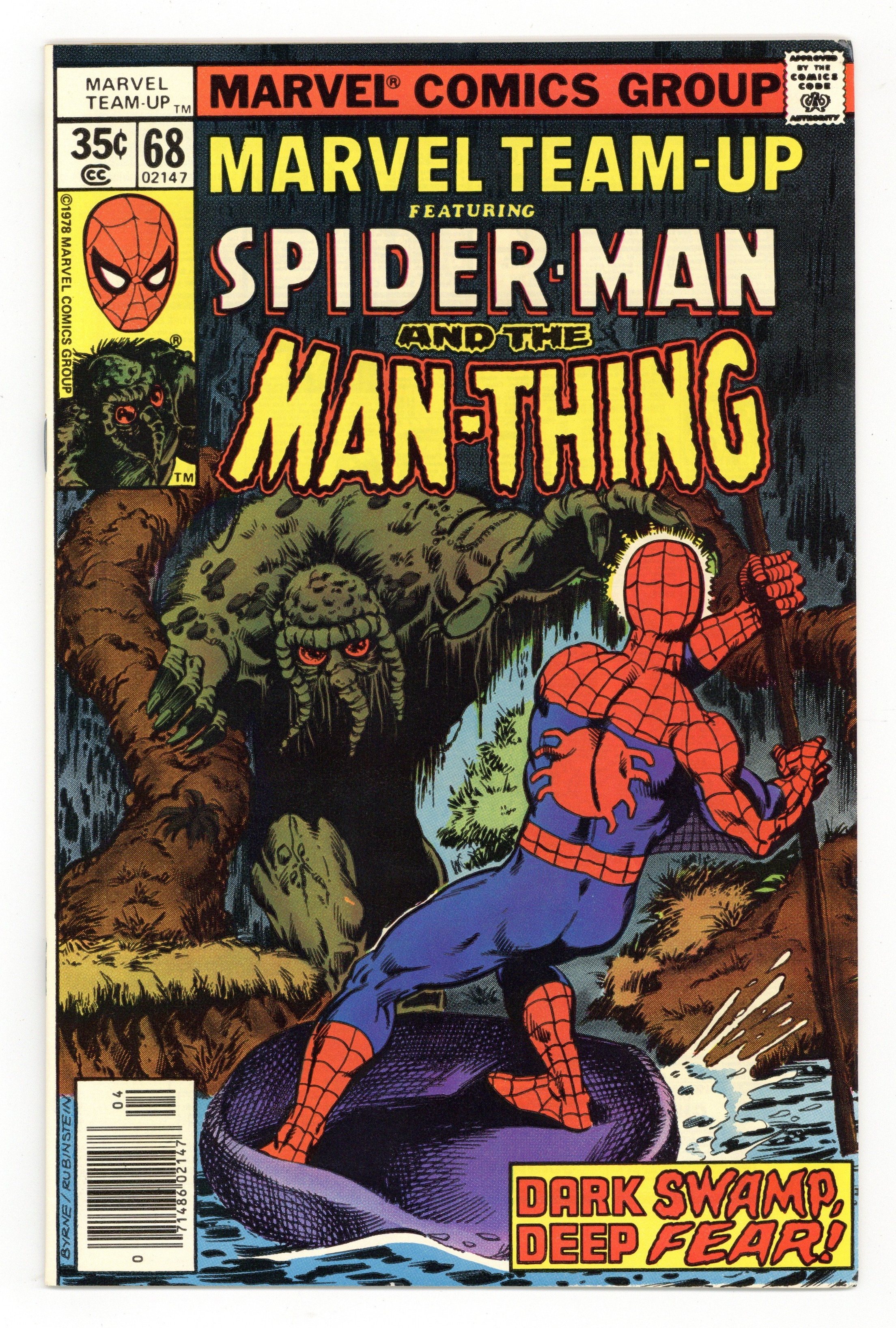 Tags: Spider-Man$23.00"The Measure of a Man!" Guest-starring Spider-Man and the Man-Thing. Script by Chris Claremont. Pencils by John Byrne. Inks by Bob Wiacek. Cover by John Byrne and Joe Rubinstein. Peter Parker and Mary Jane Watson are visiting the circus, when they notice a sad-looking creature imprisoned in a glass cage. It's the Man-Thing! What is he doing in New York? After nightfall, a sympathetic Spider-Man returns to the circus and frees his friend. The trip back to the Everglades is going smoothly until the plane crashes in the Florida swamp! One thing leads to another...and the web-slinger, Man-Thing, and Jennifer Kale wage a savage battle for survival against a new evil villain...D'Spayre! An outstanding story! First appearance of D'Spayre. (Notes: The letters page includes a letter from comics writer Michael Higgins. The back inside cover contains a Star Wars ad with Neal Adams art. This story was reprinted in Marvel Tales 204.) 36 pages. Cover price $0.35.