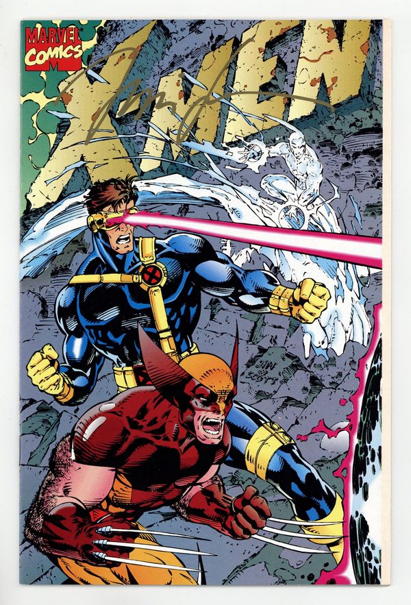 Comics X-Press Signed Edition. Autographed by Jim Lee with Comics X-Press limited photo certificate of Jim Lee. Fold-out cover. Magneto guest stars in "Rubicon." Script by Jim Lee (co-plot) and Chris Claremont, pencils by Jim Lee, inks by Scott Williams. Nick Fury cameo. 2-page pin-up: gallery of X-Men villains. Lee/Williams cover. Cover price $3.95.
