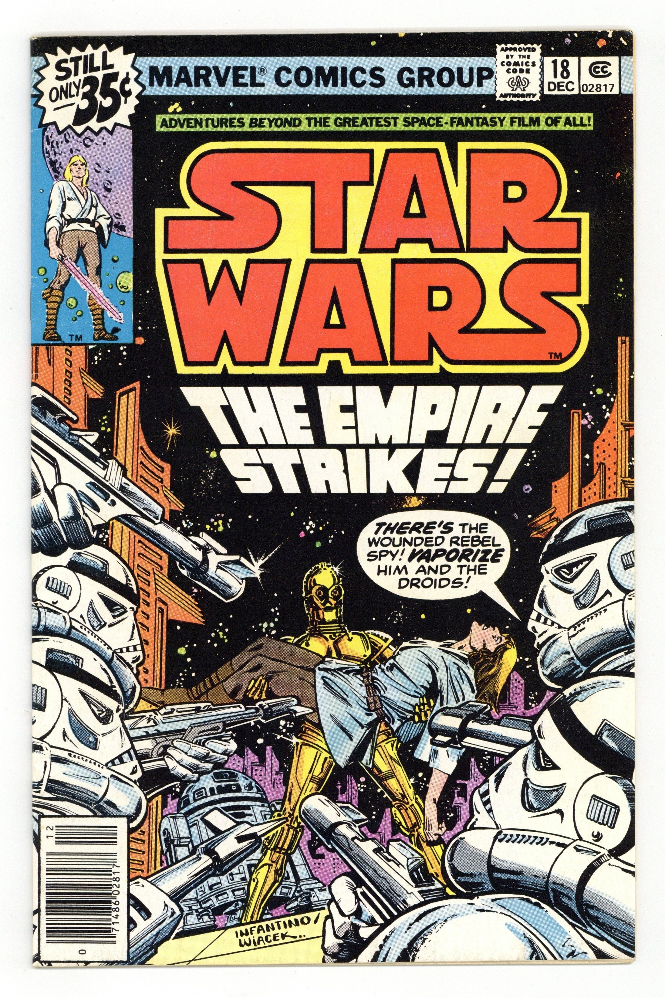 Tags: Star Wars$13.50"The Empire Strikes!" Written by Archie Goodwin. Art by Carmine Infantino and Gene Day. After the destruction of the Death Star, Luke, Han, Leia, and the rest have become the most wanted people in the galaxy. So you can imagine the Empire's delight when the crew of the Millennium Falcon seemingly falls right into their grasp. Cover price $0.35.