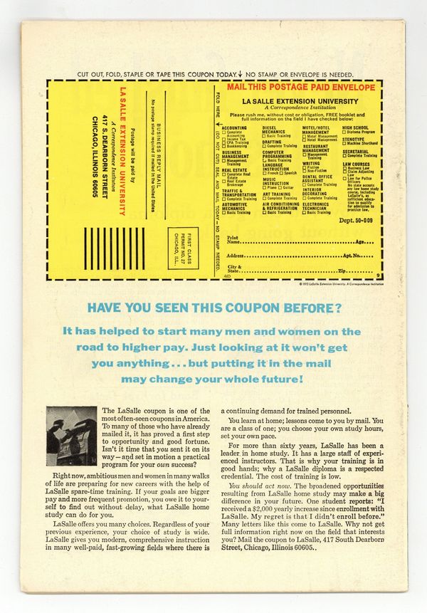 Tags: X-Men$70.00Cover art by George Tuska. The Fateful Finale, script by Roy Thomas, pencils by Don Heck, inks by Vince Colletta; Mastermind and Unus attack Cyclops and Iceman; Marvel Girl frees herself and others from jail and convince the Russians that Blob has a bomb and wants to initiate WWIII; the mutants battle the Mutant Master; reprinted from issue 39. Mister Universe, script by Stan Lee, art by Steve Ditko; reprinted from Amazing Adult Fantasy #10. 36 pgs. $0.20. Cover price $0.20.