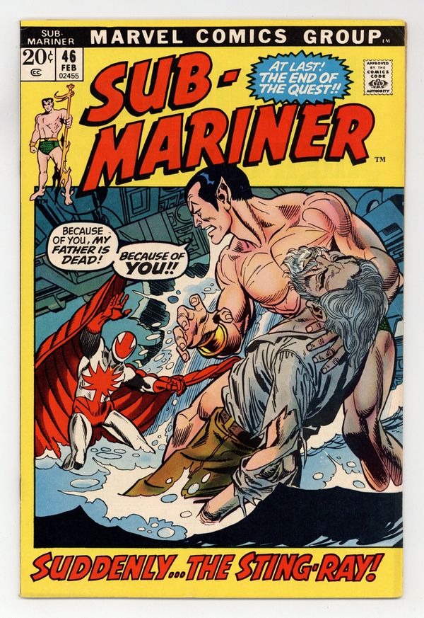 Cover pencils by Gil Kane, inks by Frank Giacoia. "Even the Noble Die," script by Gerry Conway, pencils by Gene Colan, inks by Mike Esposito; Namor desperately attacks Tiger Shark while Llyra keeps an eye on her prisoner, Leonard Mackenzie, Namor's father; Llyra tires of their battle and captures Namor; Sting-Ray comes to Namor's rescue and they confront Llyra and Tiger Shark; Unfortunately, before Namor can do anything, Tiger Shark kills Mackenzie; They get away while Namor mourns the loss of his father. 36 pgs., full color. $0.20. Cover price $0.20.